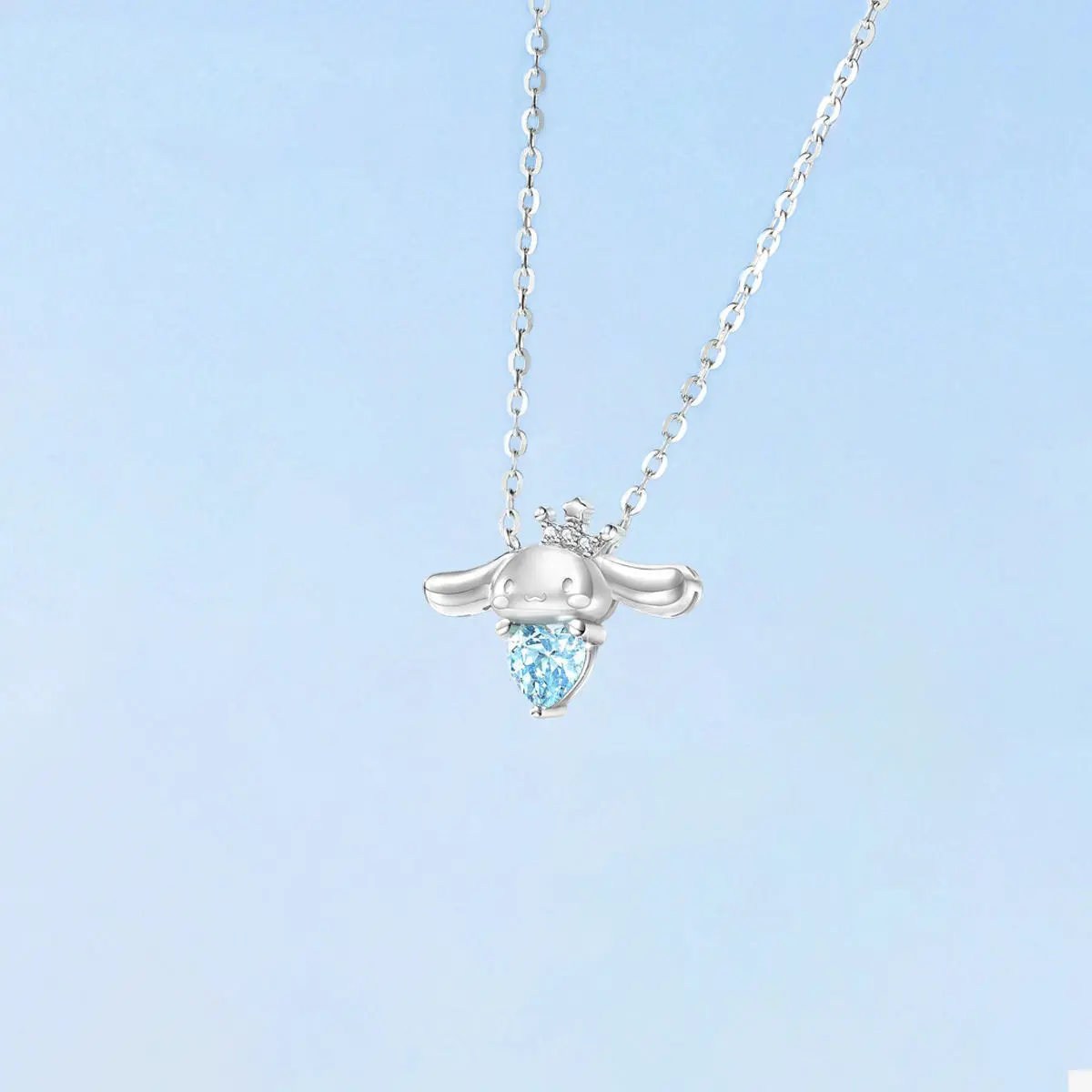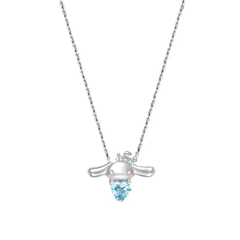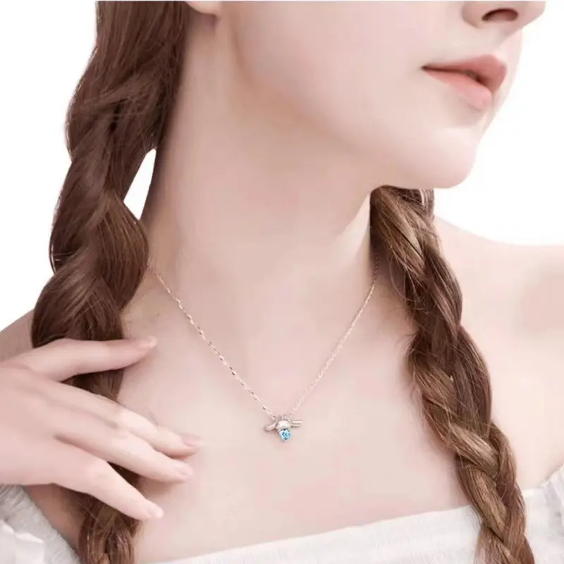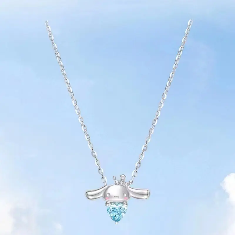 玉桂狗女孩海蓝之心项链轻奢百搭大耳狗天空之心吊坠项链锁骨链