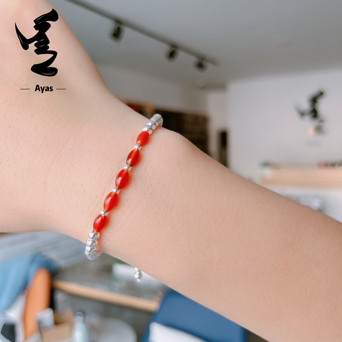 990足银手工玛瑙米珠银珠手链纯银小清新抽绳手链艾斯银饰蒙元素