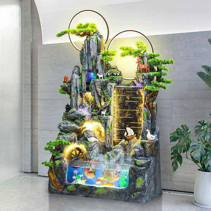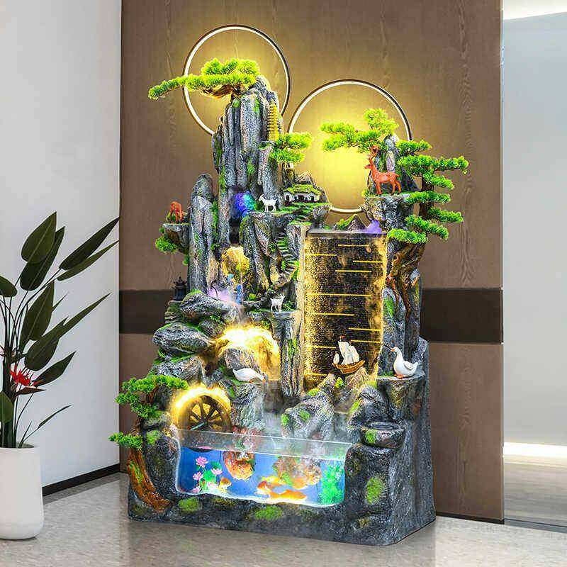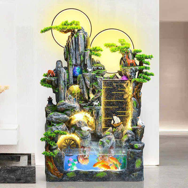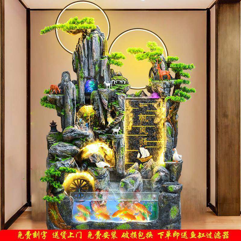 大型落地假山循环流水喷泉鱼缸客厅户外玄关公司开业招财装饰摆件