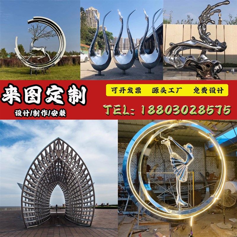 不锈钢雕塑定制售楼部校园景观广场地标建筑厂家玻璃钢雕塑定制