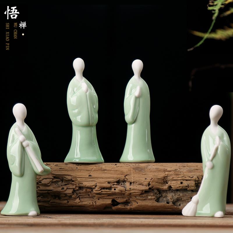 禅意陶瓷诗仙李白无相佛摆件青瓷扫地僧微景观盆景鱼缸客厅装饰品