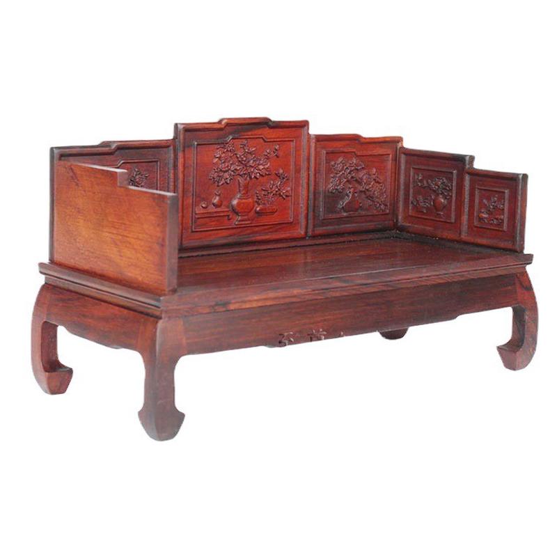 微缩模型红酸枝红木家具家具微型家具木质摆件浮雕罗汉床批发