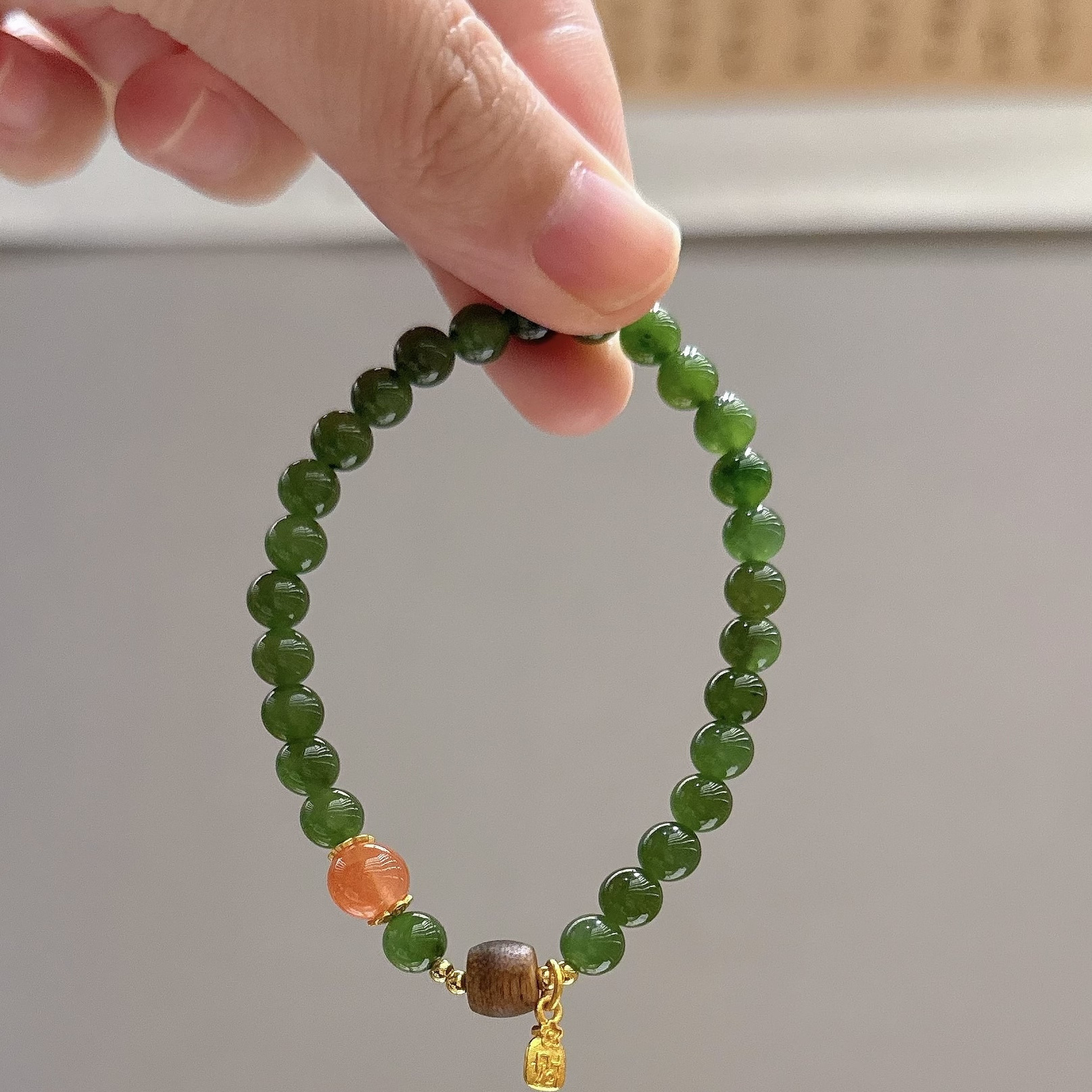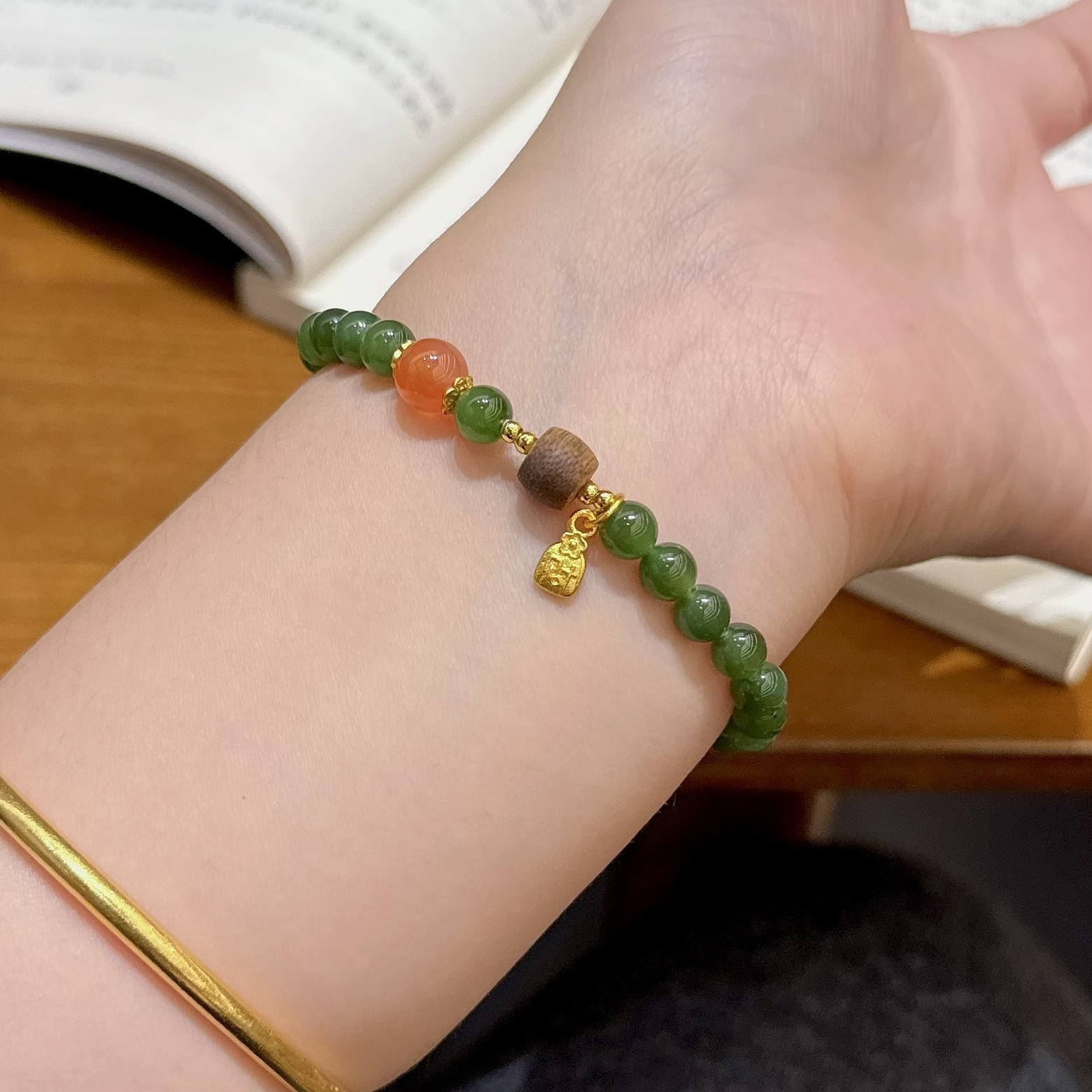 原创设计天然玉石绿色碧玉手串轻奢小众福牌招财纳福手链女士串珠