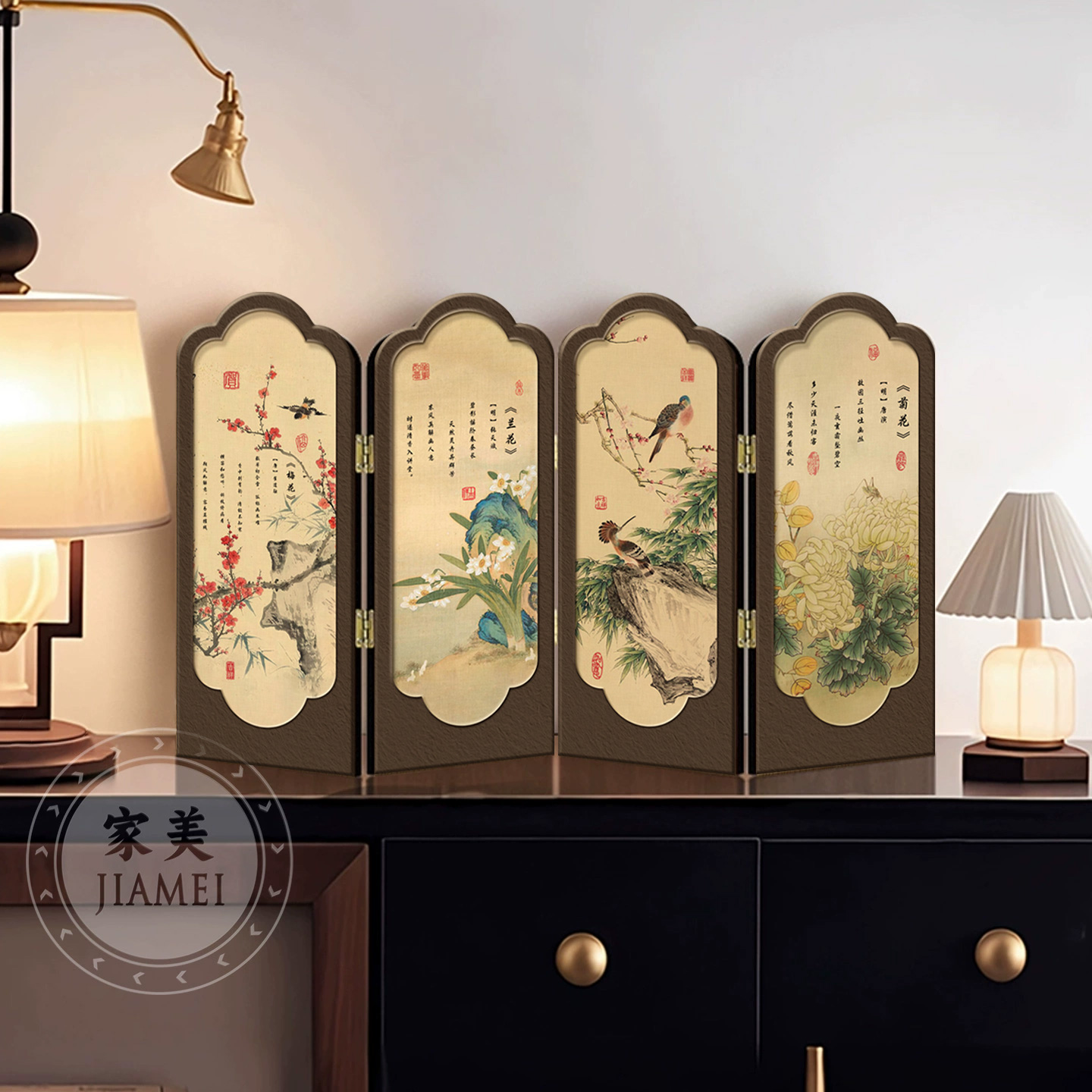 新中式梅兰竹菊水墨小屏风国风家居装饰画入户进门玄关柜桌面摆件
