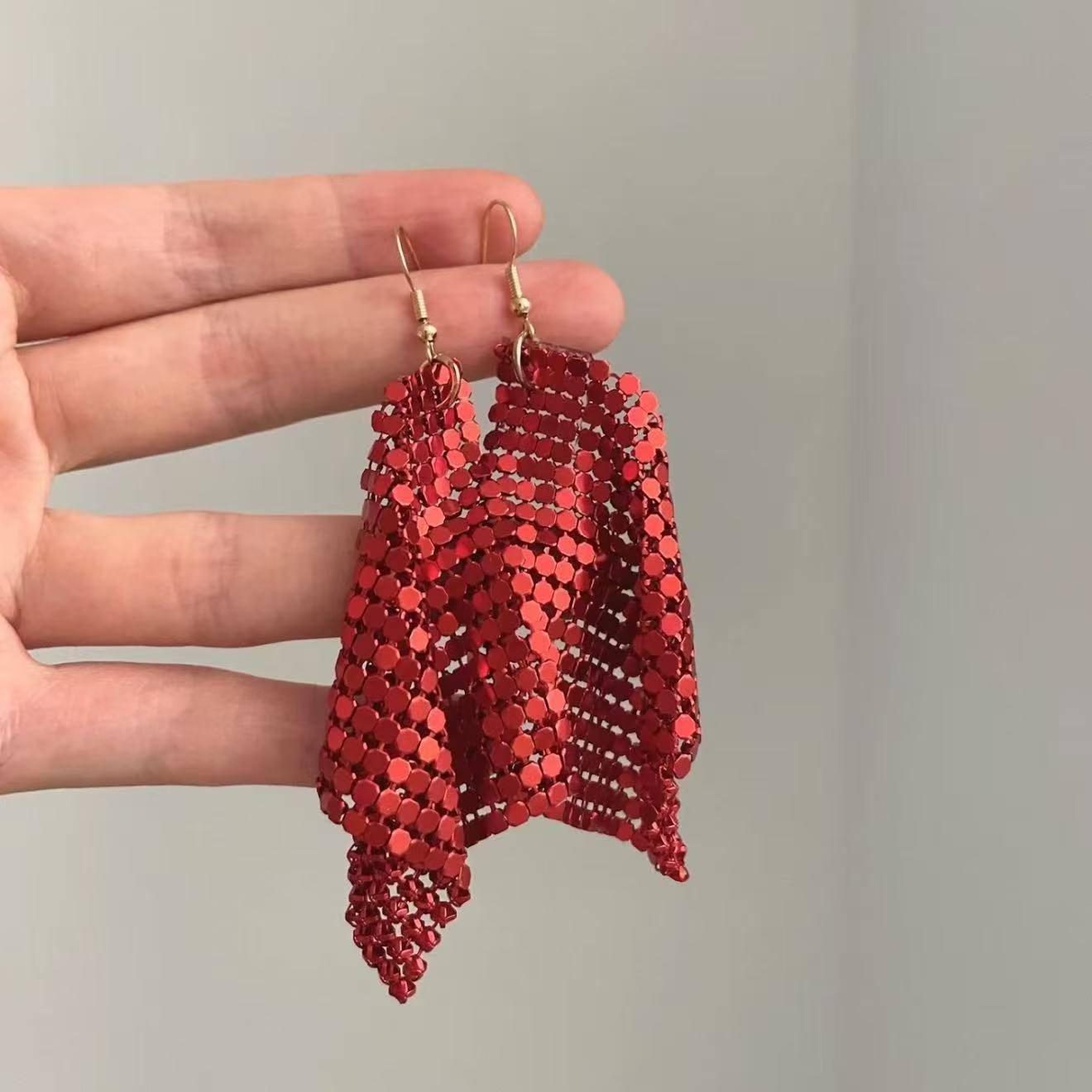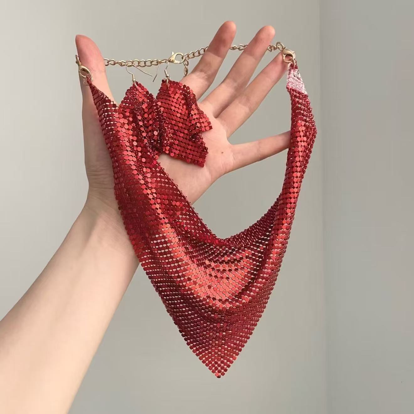欧美夸张时尚红色亮片三角围巾项链耳环套装2025个性气质锁骨项链