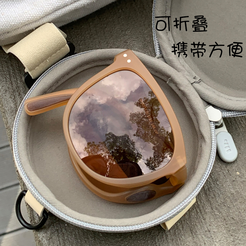 折叠墨镜女高级感ins2025新款眼镜茶色近视太阳镜防紫外线防晒