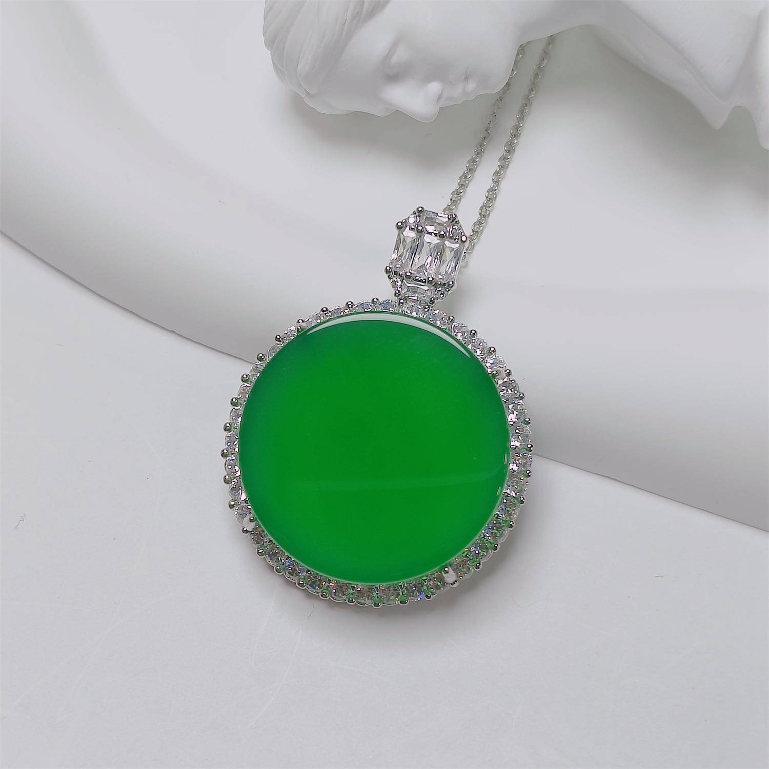 本命年玉石兵乓球拍绿玉髓吊坠帝王绿翡翠色无事牌圆牌玛瑙玉石女