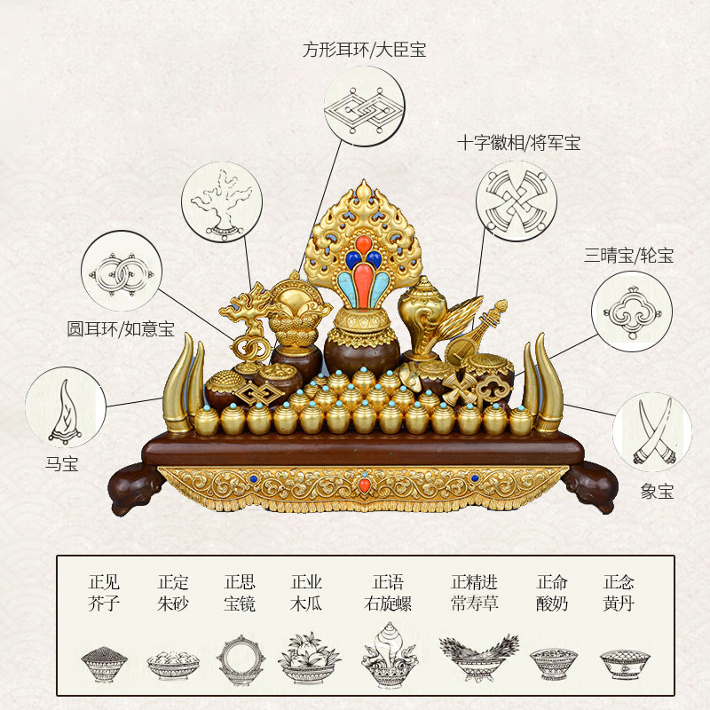 欧斯特百宝总集摆件 西藏摩尼宝家用铜大百宝座佛前供品七珍八宝