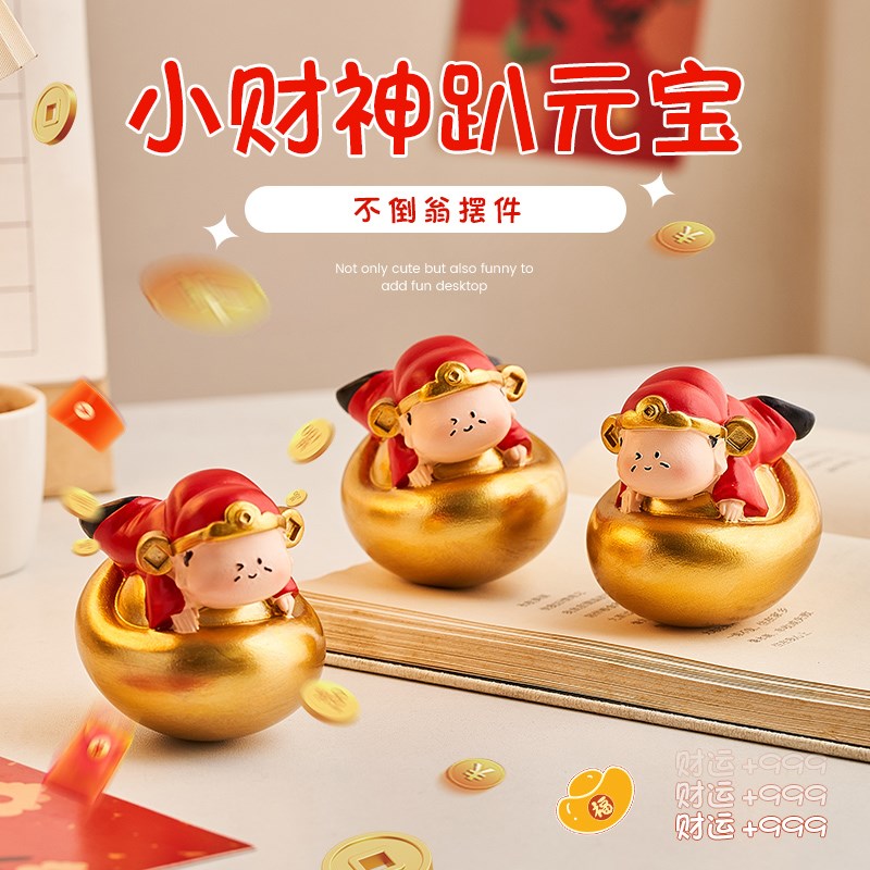 可爱小财神不倒翁招财发财办公桌B面摆件工位情绪稳定神器解压礼