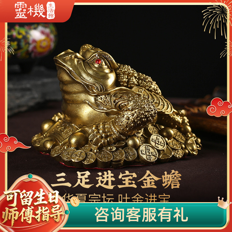 居龙阁黄铜金蟾摆件日进斗黄金办公室客厅桌面三足金蟾蜍开业送礼