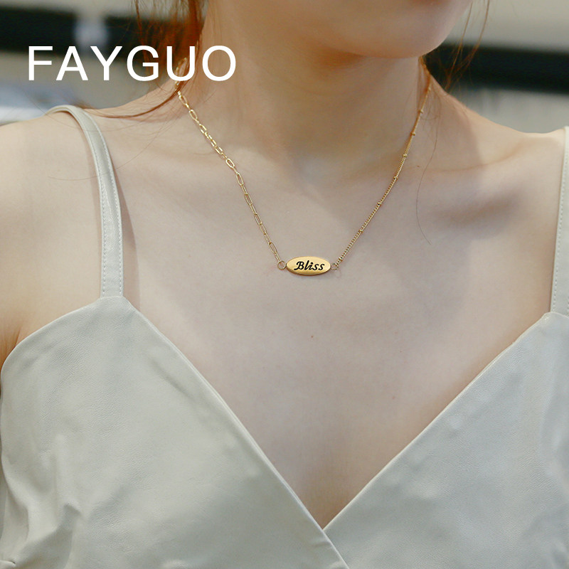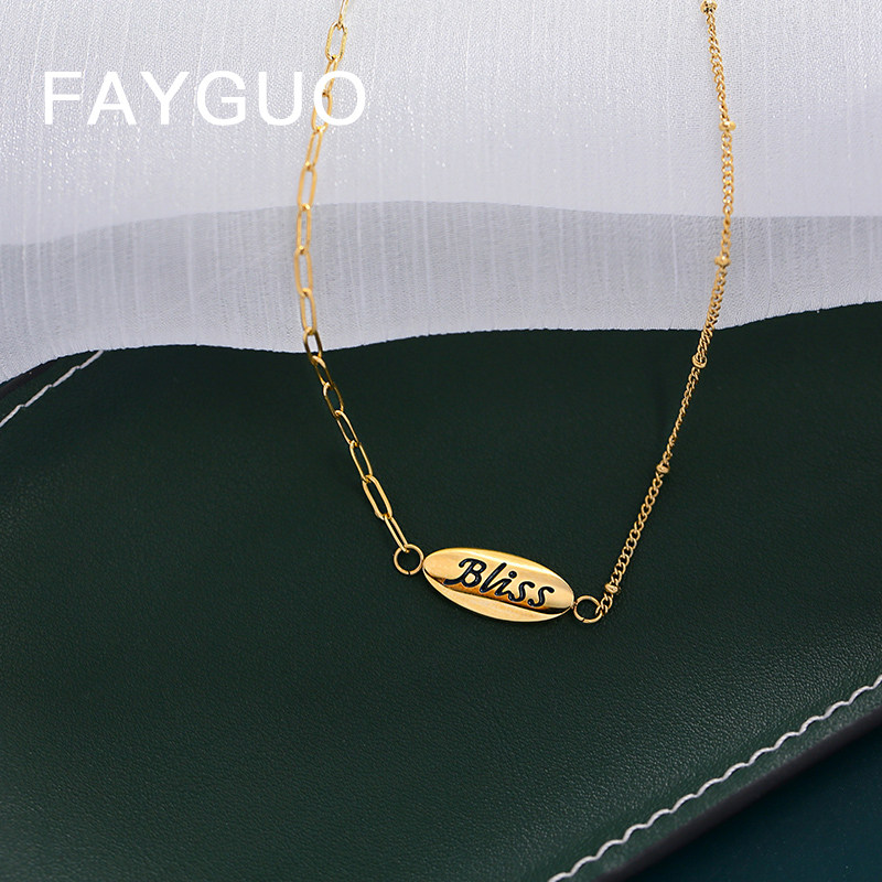 轻奢风Bliss字母项链女不掉色钛钢锁骨链小众设计ins冷淡风颈链