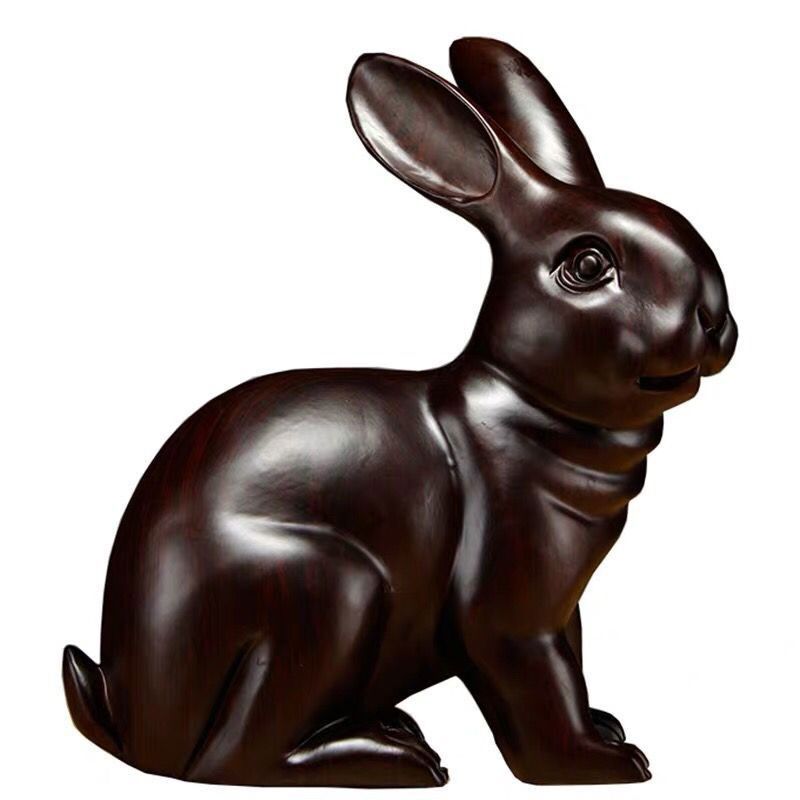 黑檀木雕兔子摆件实木质生肖工艺品家居客厅玄关装饰摆设生日礼物