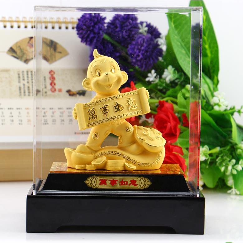 高档绒沙金可爱生肖猴摆新件贺岁礼品送年导朋领友开业生日礼物摆