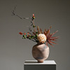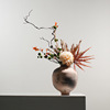 日式侘寂风插花自然枯枝花艺复古粗陶花瓶大圆罐仿真实果子装饰