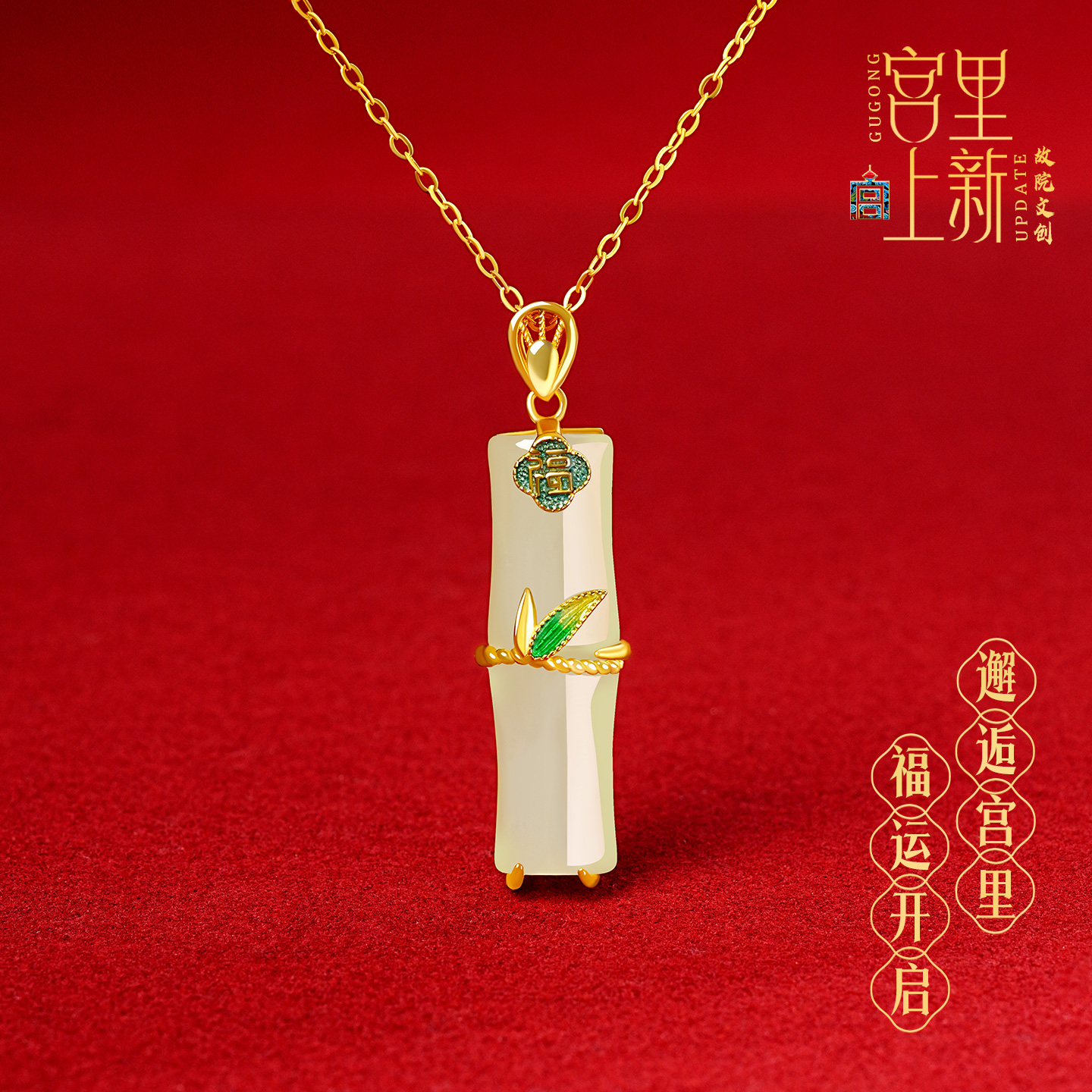 宫里上新和田玉竹节项链女款玉石吊坠新中式国风锁骨链生日礼物