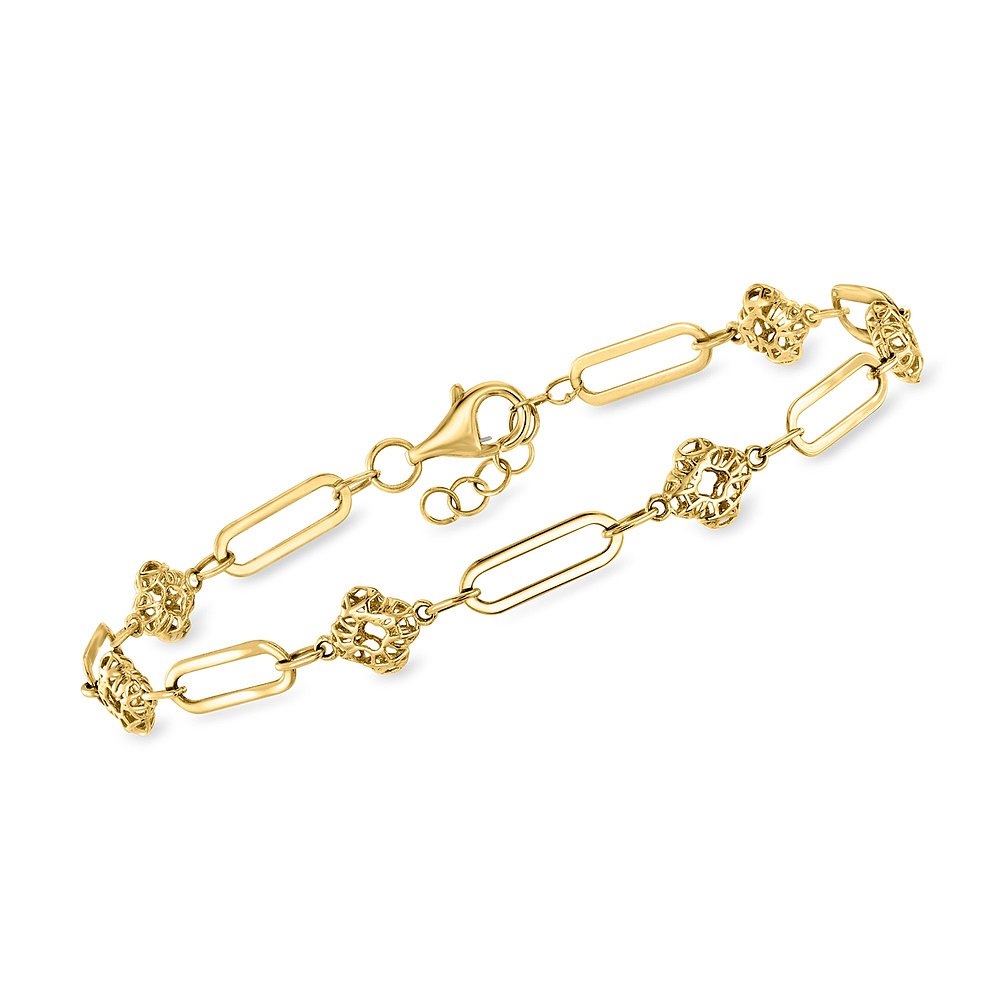Ross-Simons 14kt 黄金交替三叶草和回形针链接手链 - 6.5 英寸