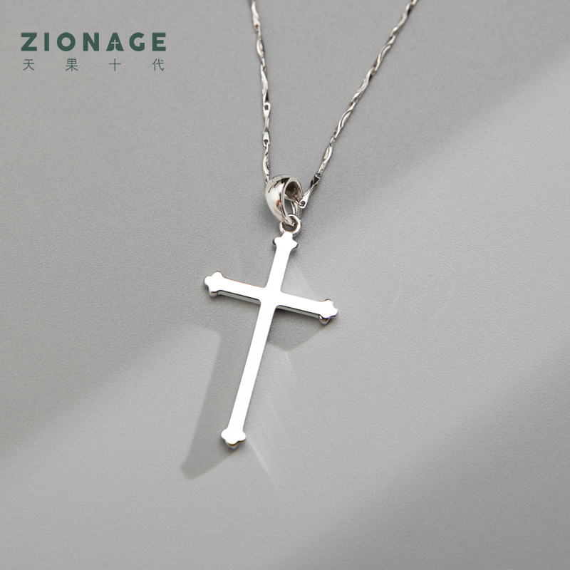 刻字925纯银十字架项链时尚简约三叶吊坠男款女生七夕节平安礼物
