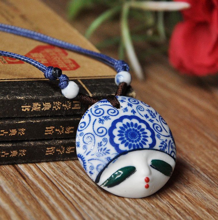 原创手工陶瓷饰品 民族风首饰 脸谱娃娃头挂件项链 女士复古风