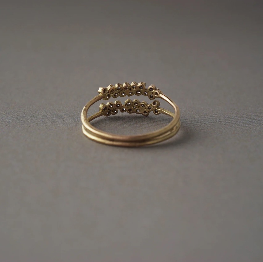 包税包邮日本代购noguchi职人手工镶嵌棕色钻石14K镀金双环戒指女