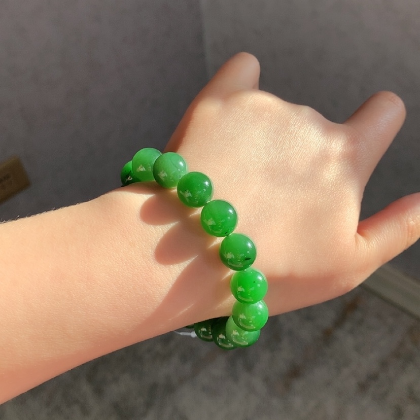 [支持复检]天然和田玉俄罗斯红皮老料碧玉阳绿手串12mm