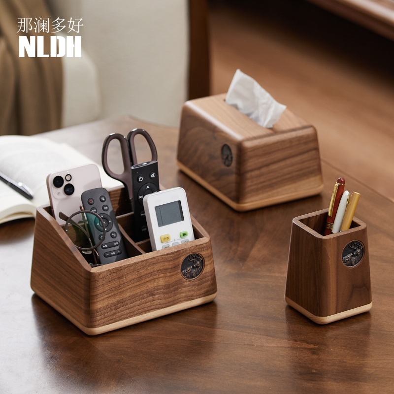 现货速发黑胡桃木创意桌面摆件客厅玄关书房进门口放分格收纳盒托