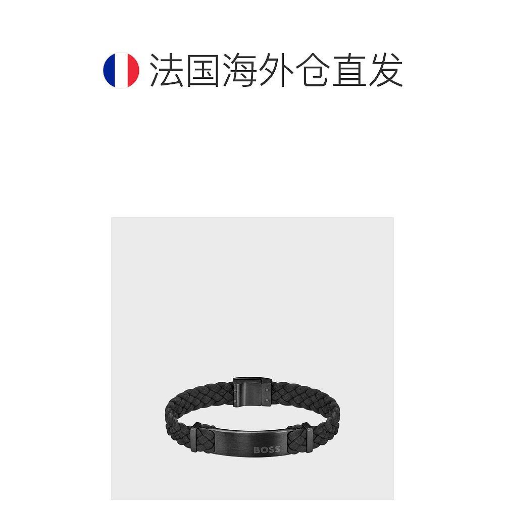 自营欧洲直邮HUGO BOSS雨果BOSS ORANGE带徽标牌的黑色绒面皮革编
