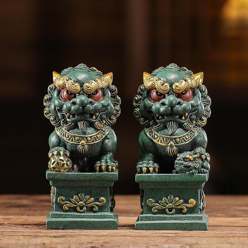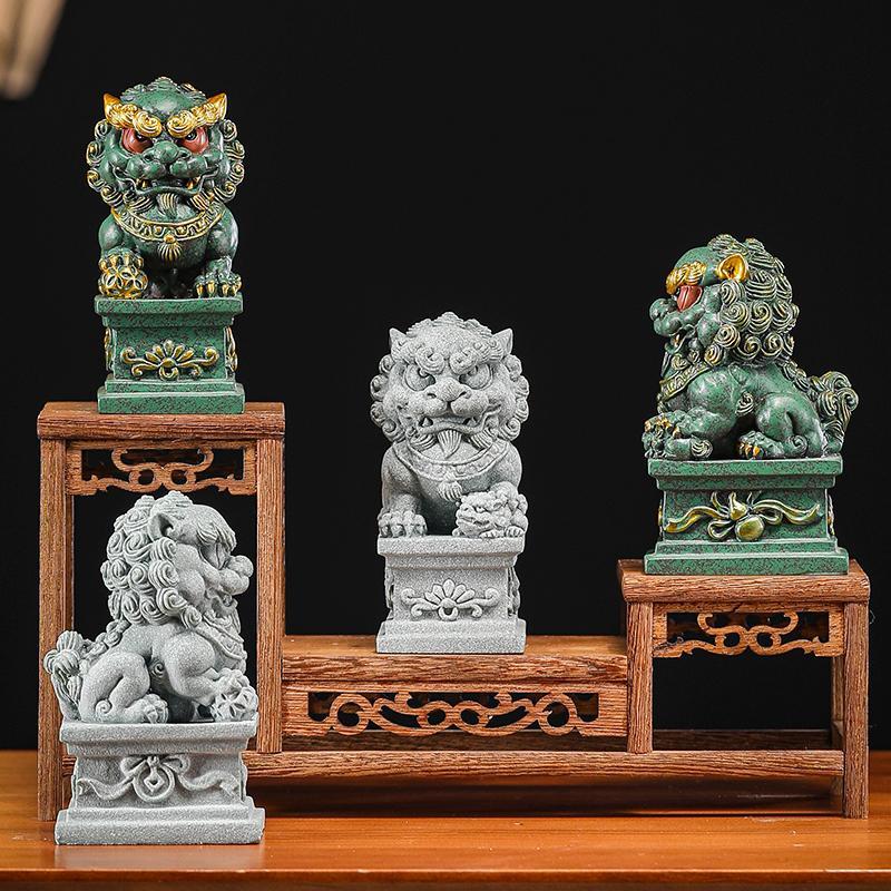 青砂石故宫文创国潮石狮子一对护院镇宅茶桌茶宠鱼缸造景装饰摆件