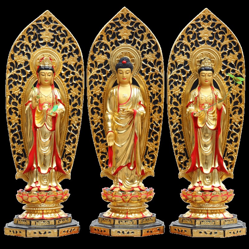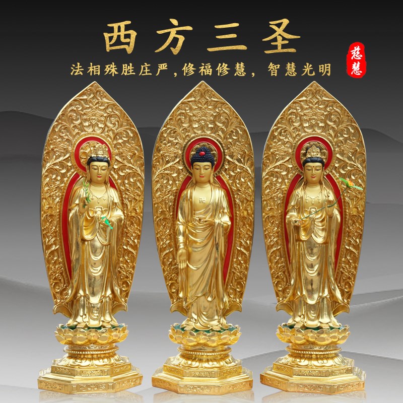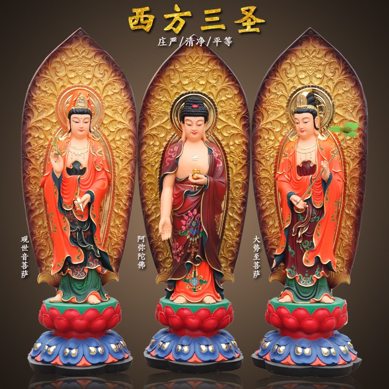 寺庙居家供奉家用西方三圣佛像摆件站观世音带背光108cm三圣神像