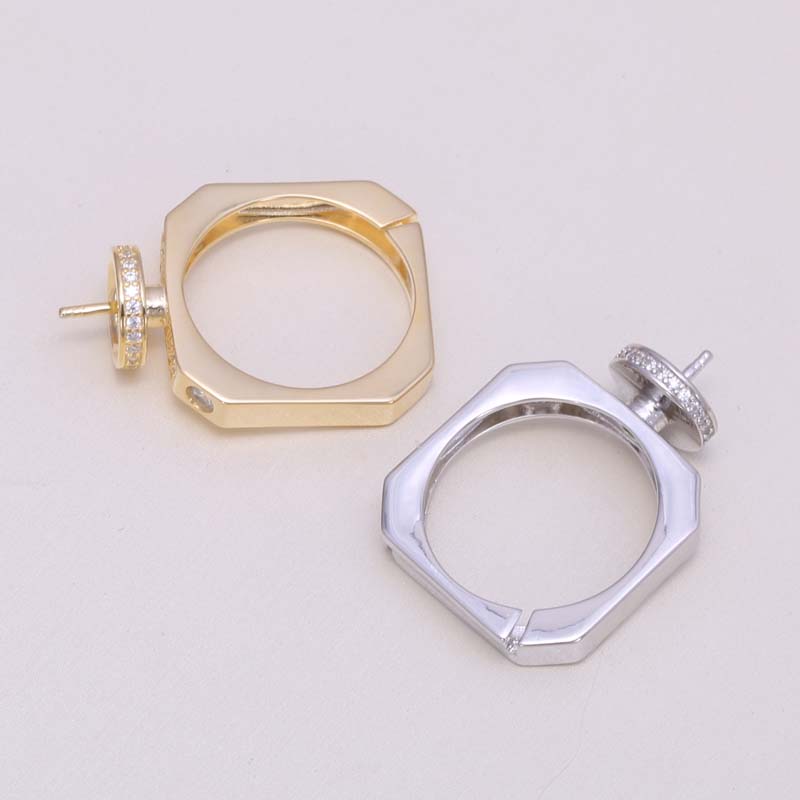DIY珍珠配件S925纯银立体质感方形戒指托指环调节戒托空托配饰品