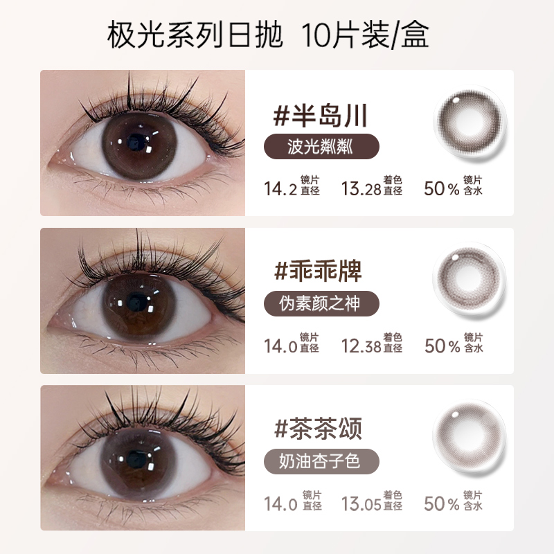 HanGee极光日抛美瞳小直径13mm棕色自然扩瞳款素颜隐形眼镜10片