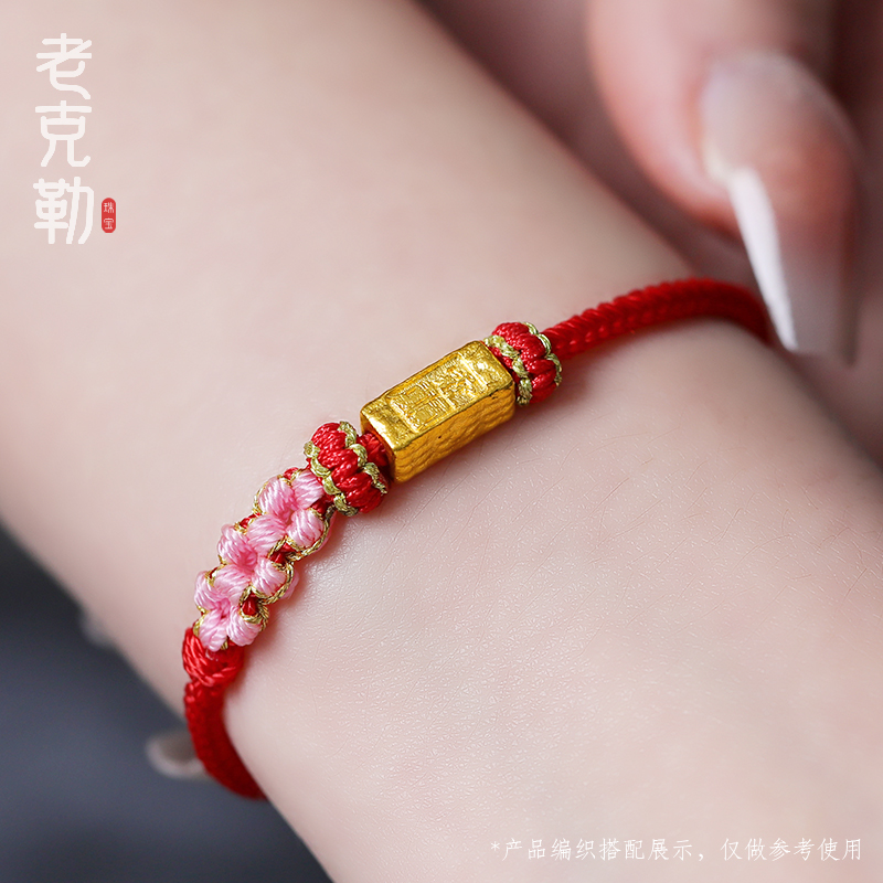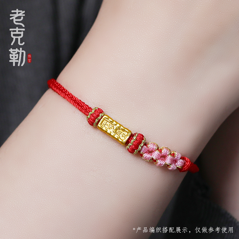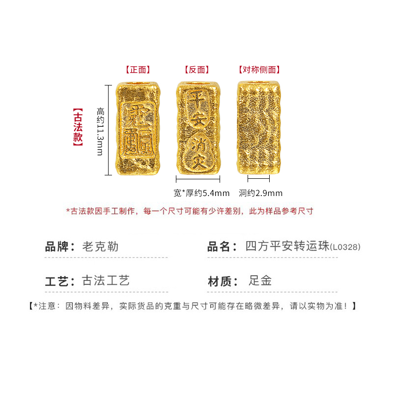 老克勒古法黄金四方平安转运珠足金路路通手链手串配件配饰男女