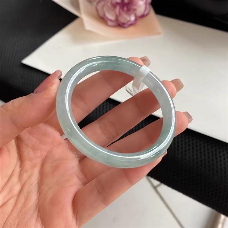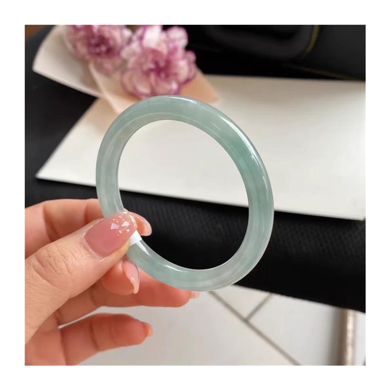 缅甸翡翠手镯浅绿色细圆条玉飘花手镯美人条翡翠处理手镯叮当镯
