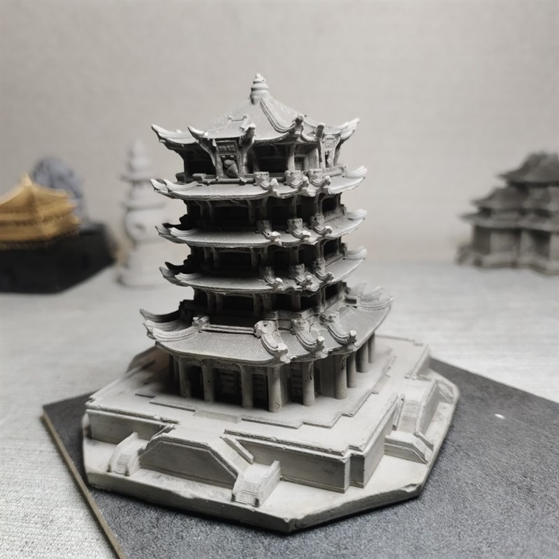 手工制水泥黄鹤楼摆件古代风格建筑E模型微景观水族鱼缸造景装饰