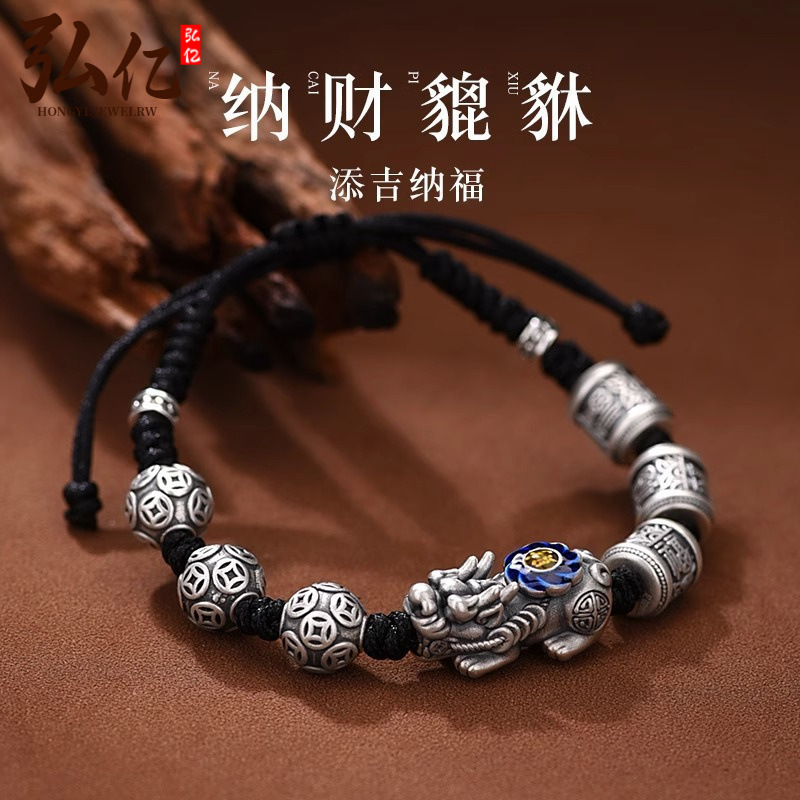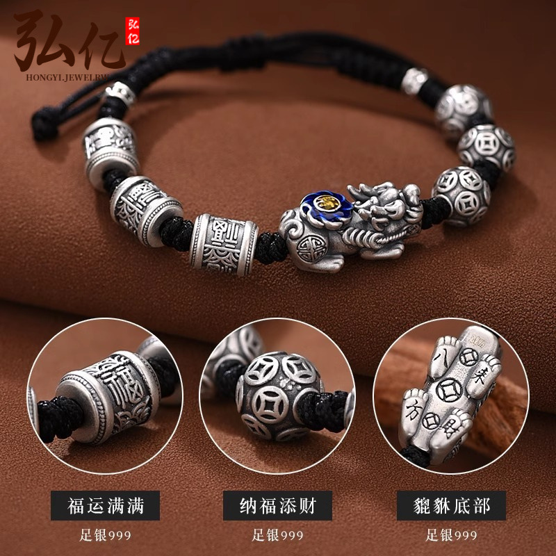 999纯银貔貅手链男士款复古民族风福字转运珠手绳礼物