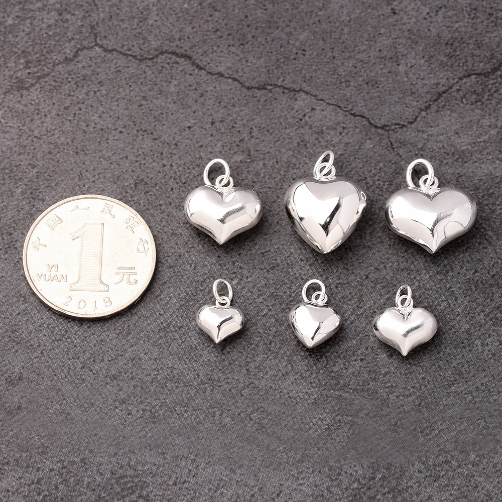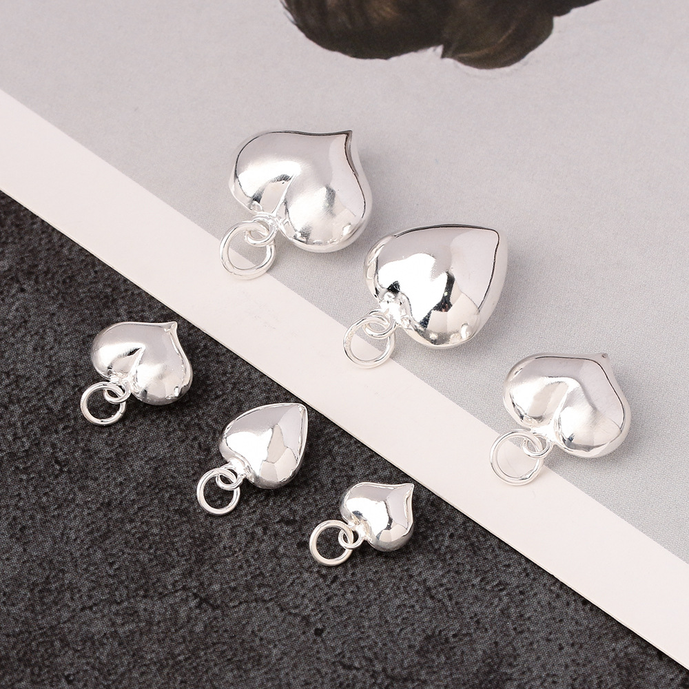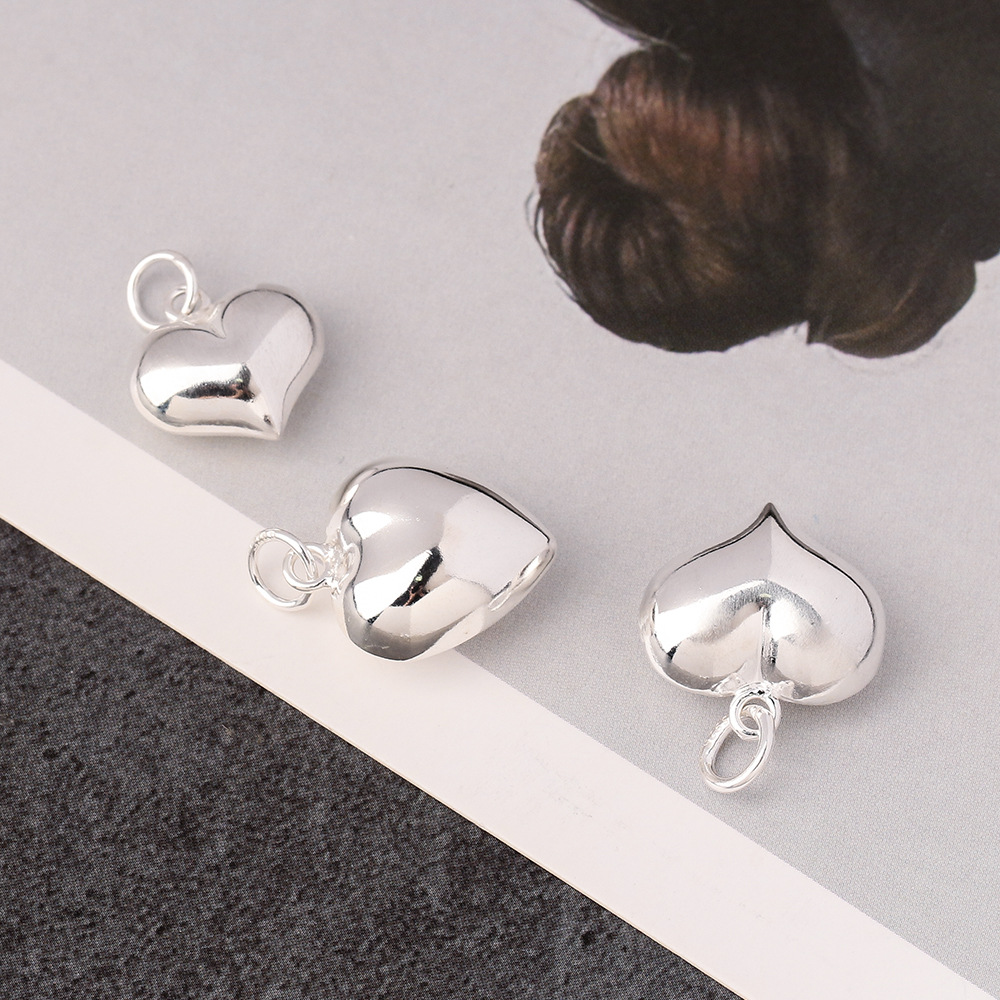 s925素银立体桃心项链吊坠饰品材料 DIY编绳串珠手链心形挂件配件