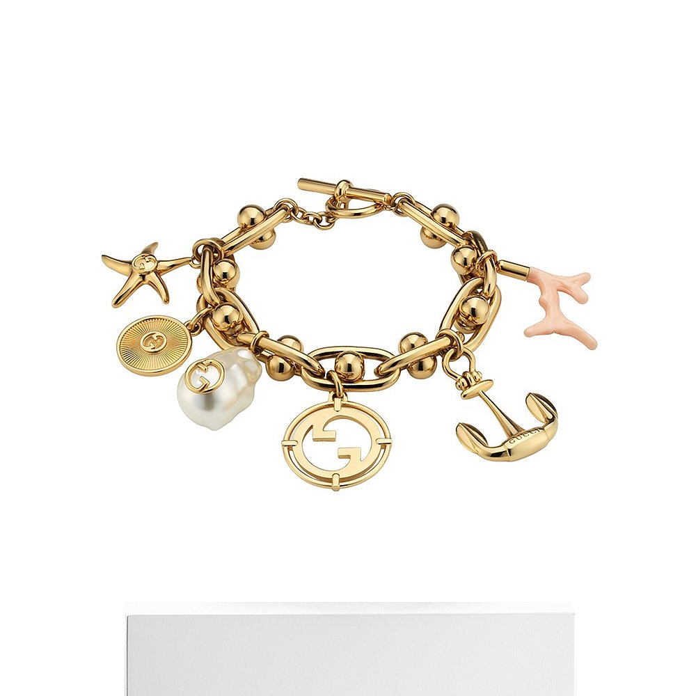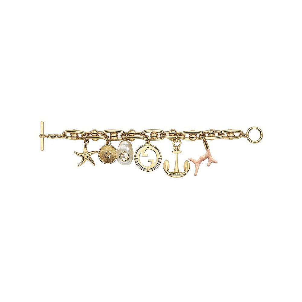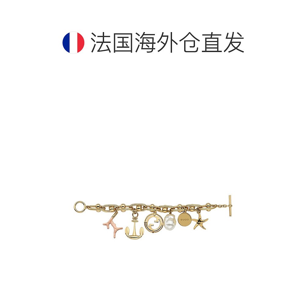 自营欧洲直邮Gucci古驰25新款 女士金色黄铜树脂珠饰品牌标志T型