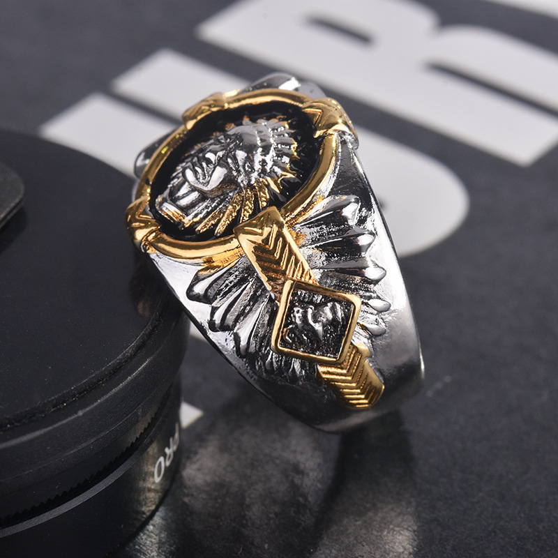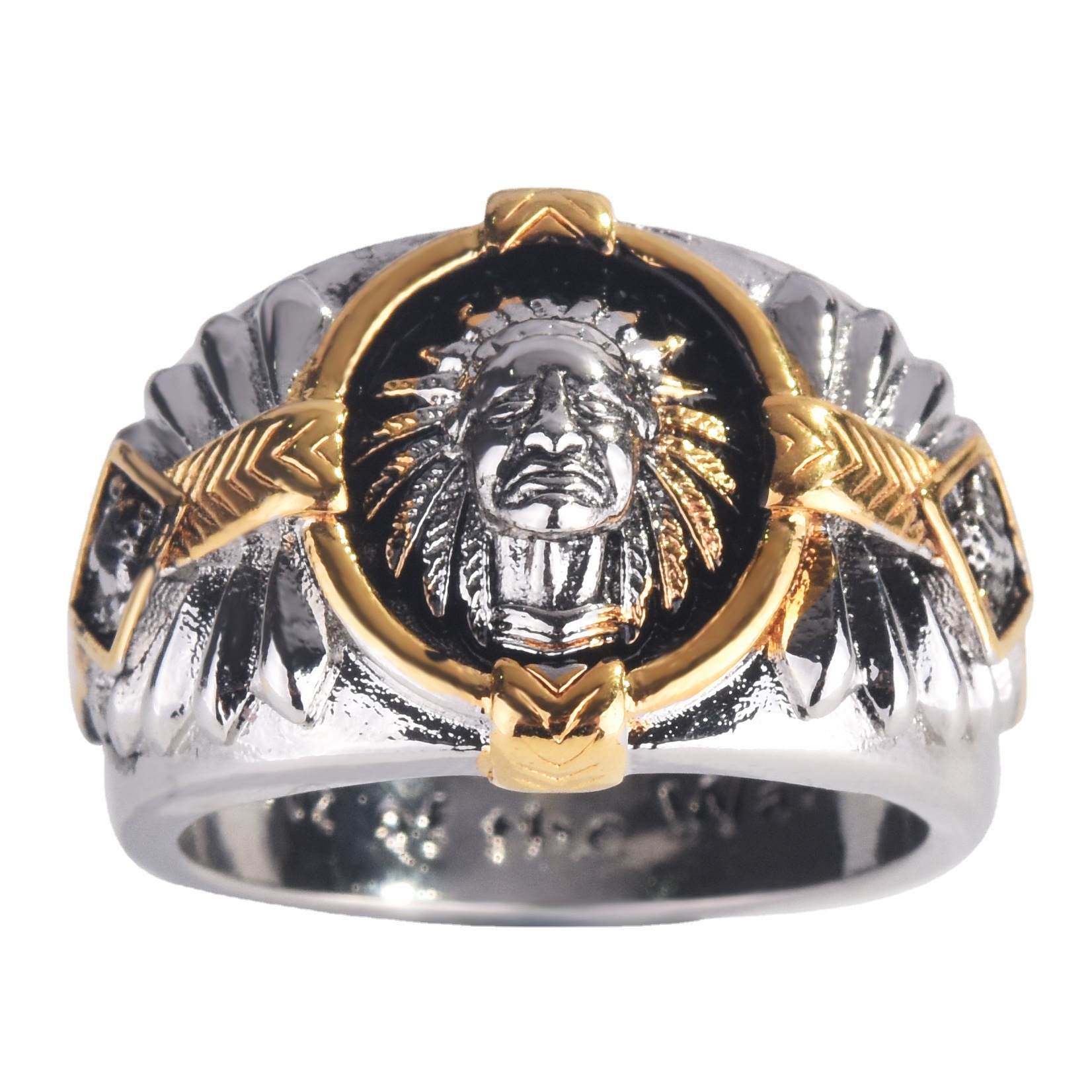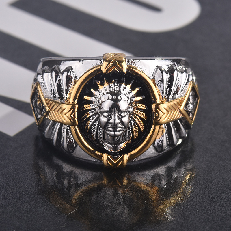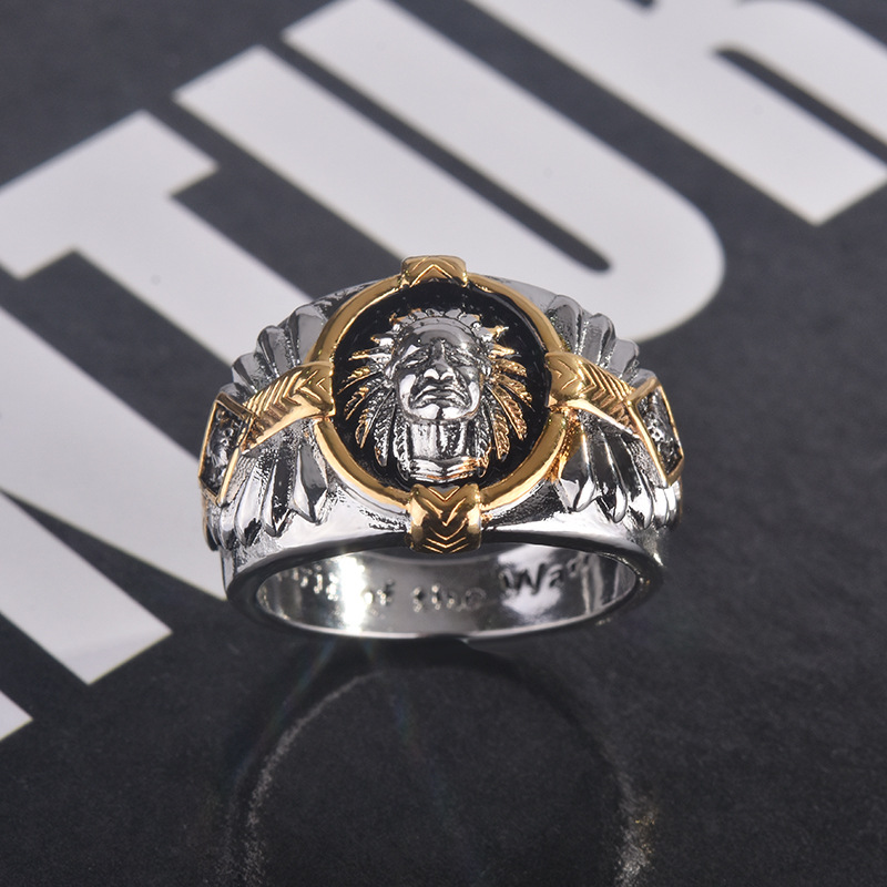 宁语wish嘻哈风格维京勇士双色戒指 印第安人精神图腾滴胶黑指环