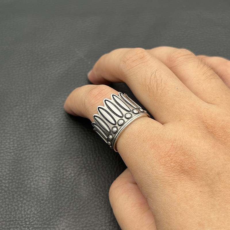 s925纯银克罗伈复古印第安羽毛戒指男cody sanderson星星指环潮牌
