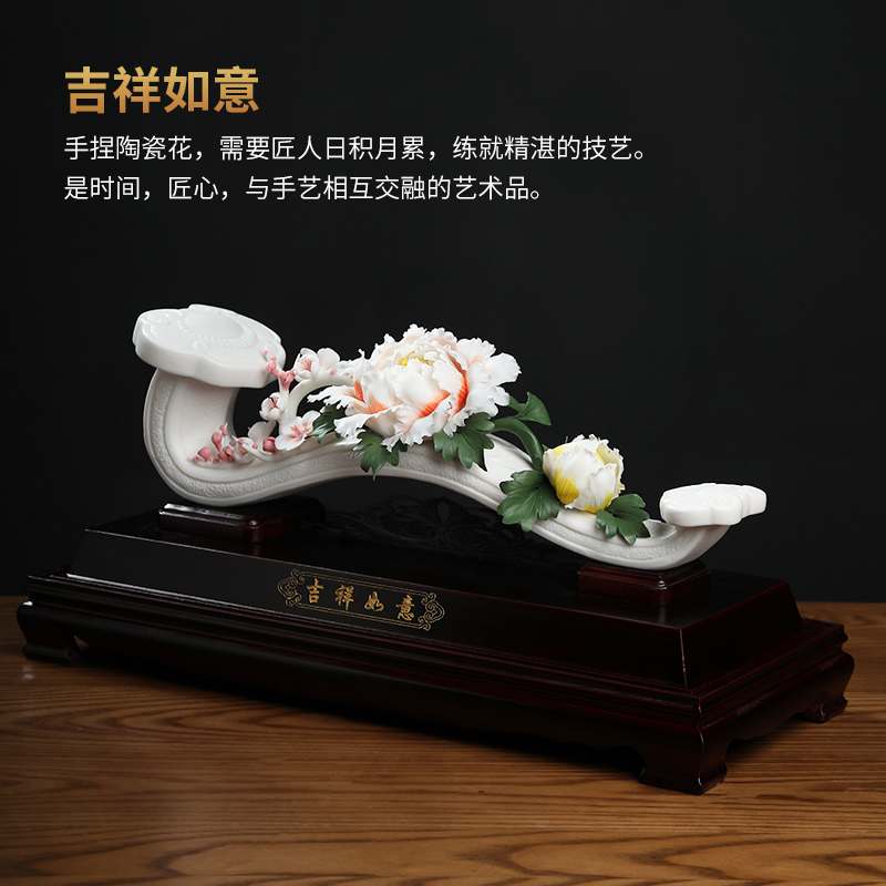东方泥土 陶瓷花摆件 德化白瓷捏花艺术品创意商务礼品/吉祥如意