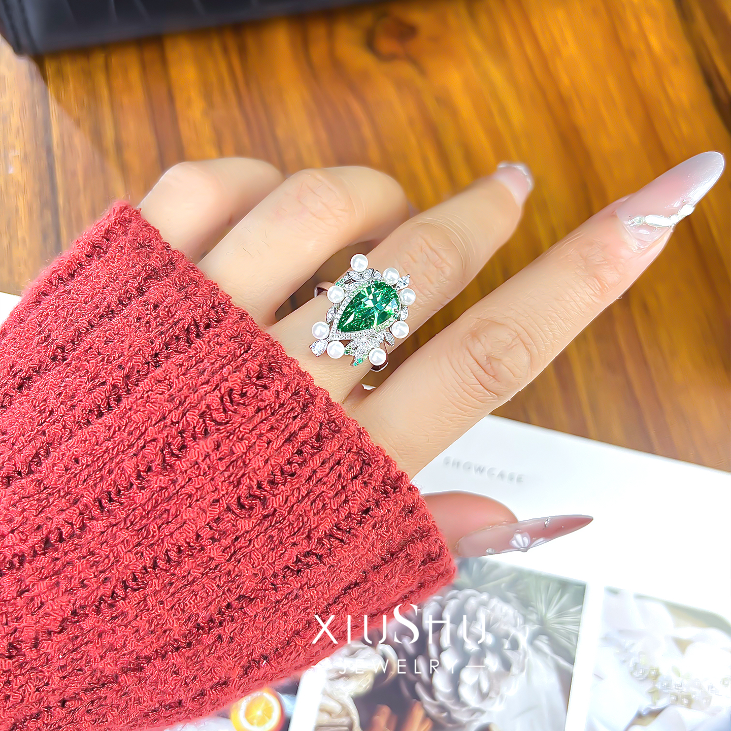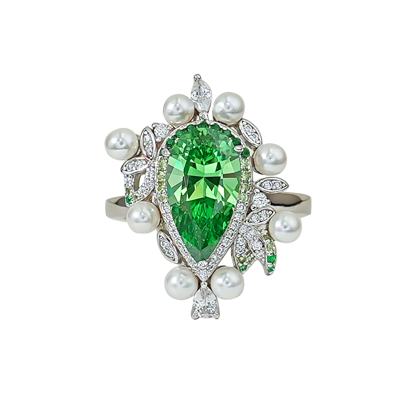【绿野仙踪】彩宝款绿碧玺色水滴梨形925纯银珍珠戒指高级设计感