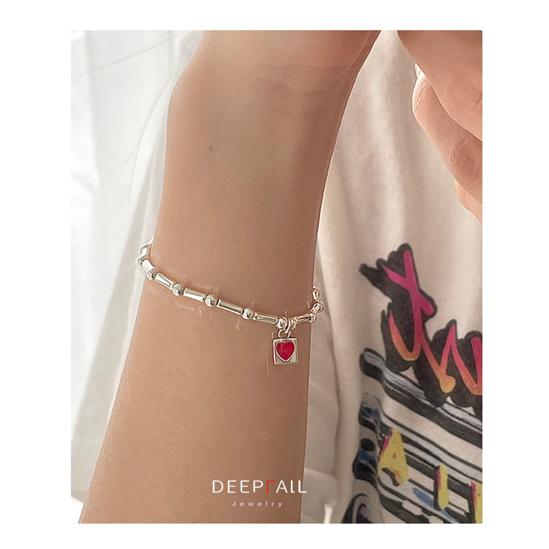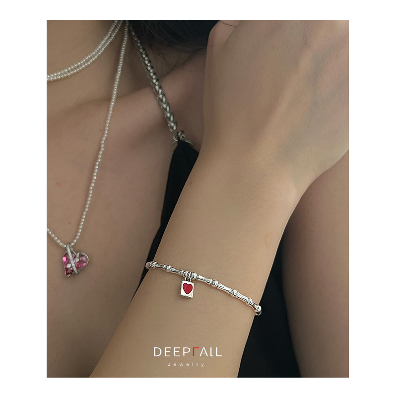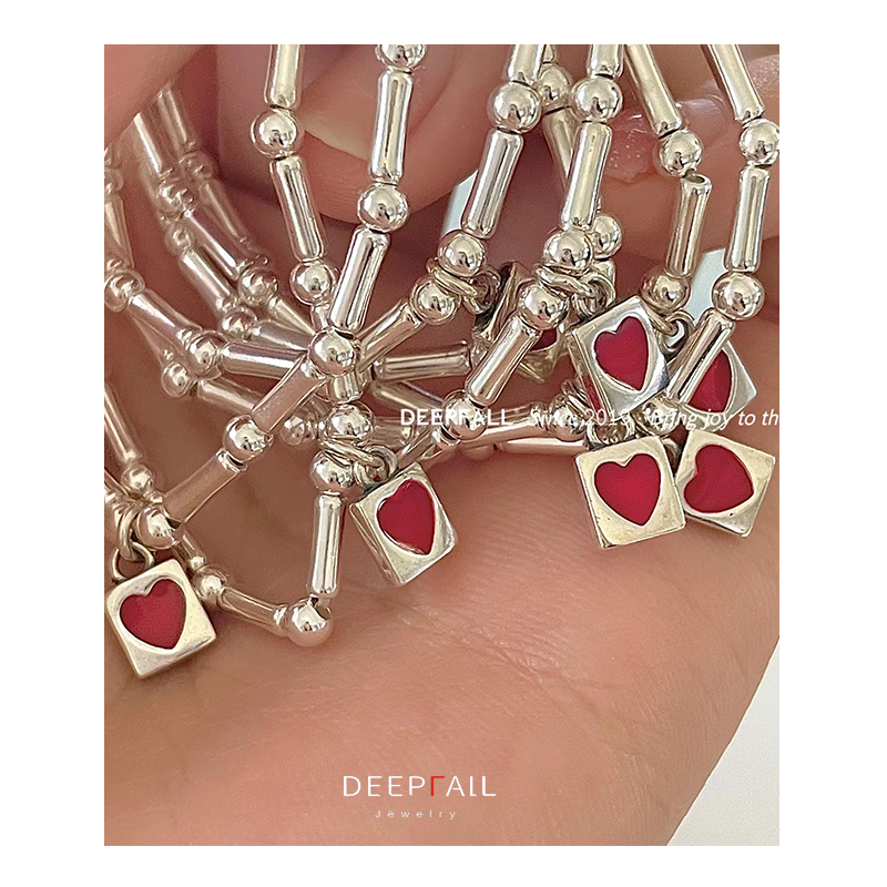 DEEPFALL原创设计S925纯银红色爱心手链女生春夏可爱简约甜美简约