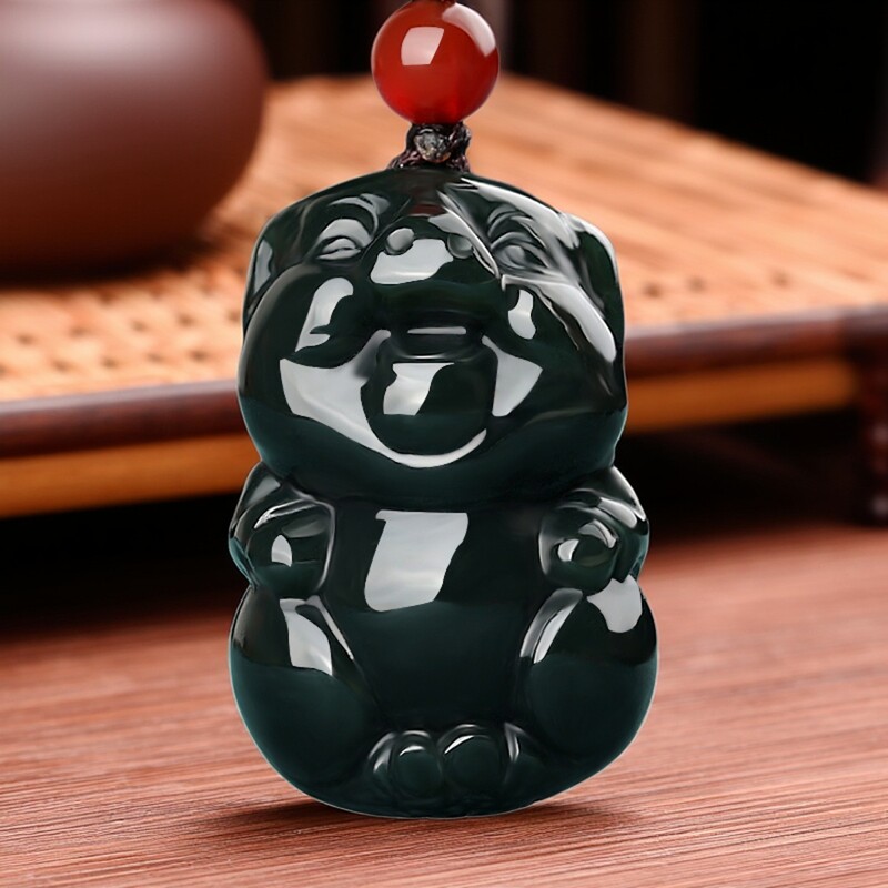 天然新疆和田玉生肖猪吊坠福猪玉挂件男女款小猪项坠大亨玉坠饰品