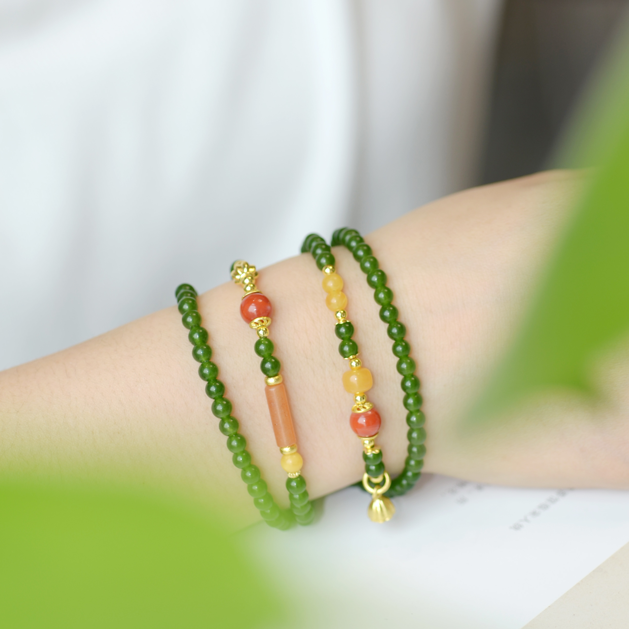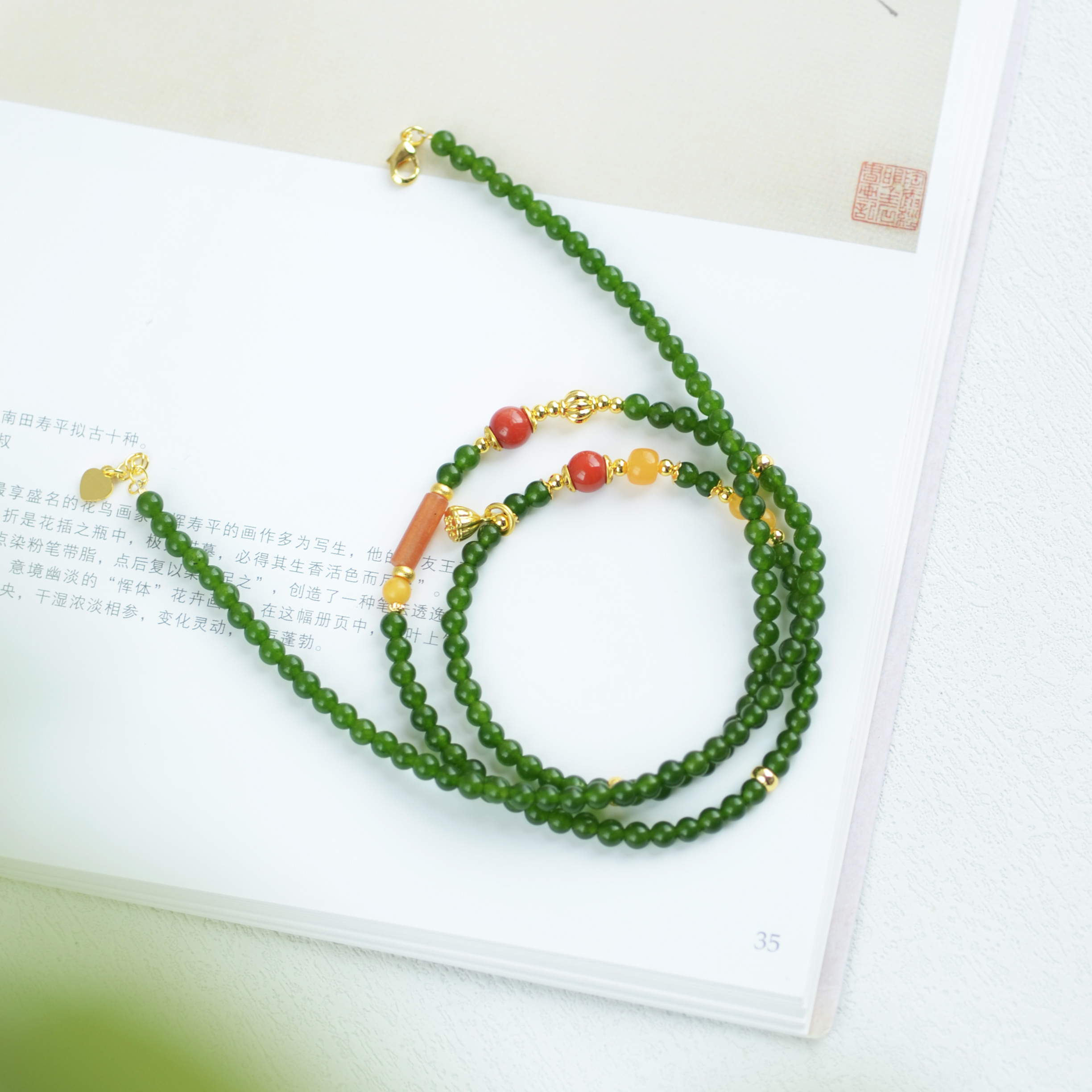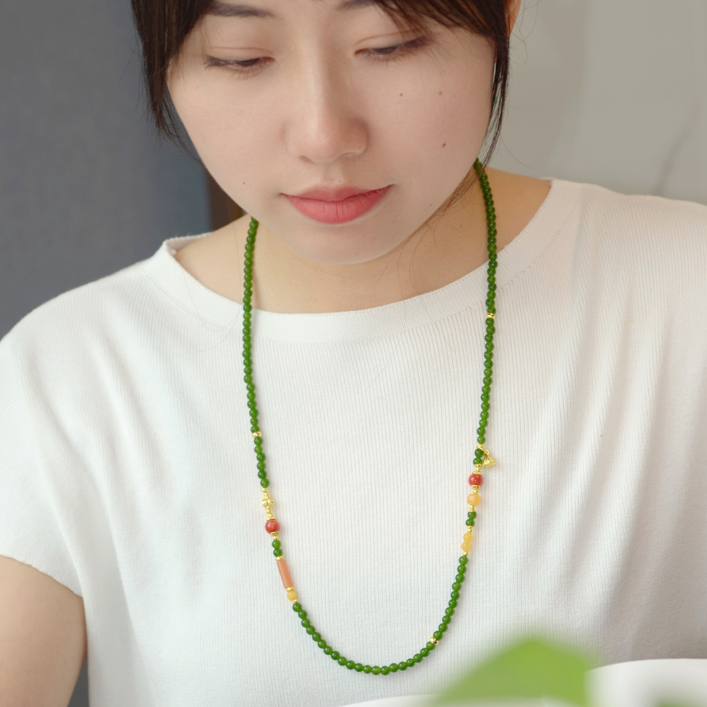 「碧染」天然菠菜绿碧玉色绿玉髓项链四圈手链两戴毛衣链万能链
