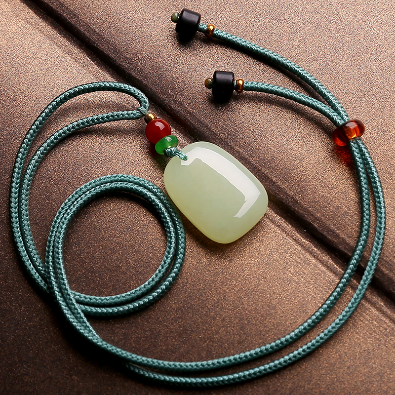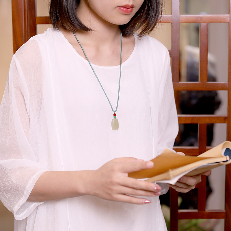 【普陀山】天然和田玉平安无事牌吊坠青白玉项链男女珠宝玉石挂件