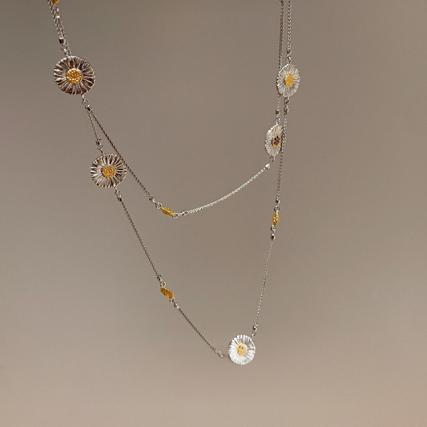黄色双层雏菊项链女配饰2025新爆款百搭颈链高级感轻奢小众锁骨链