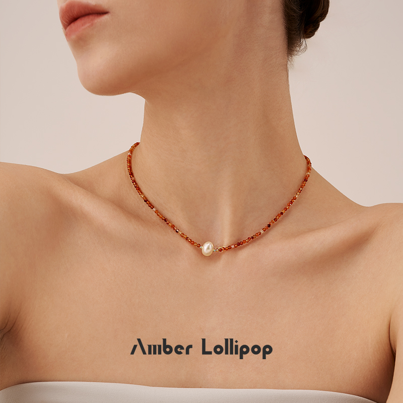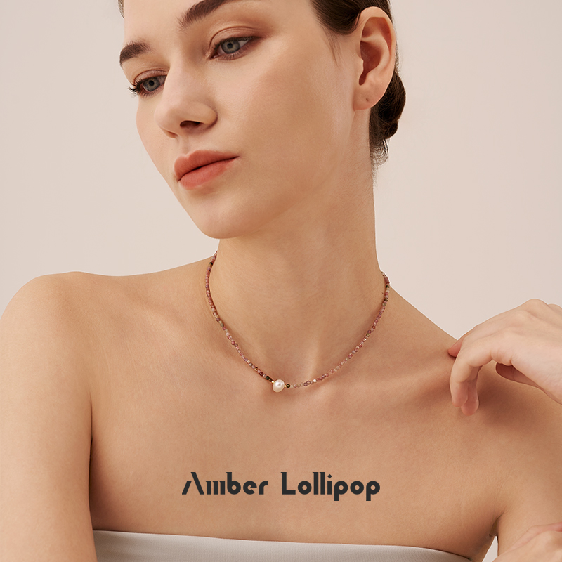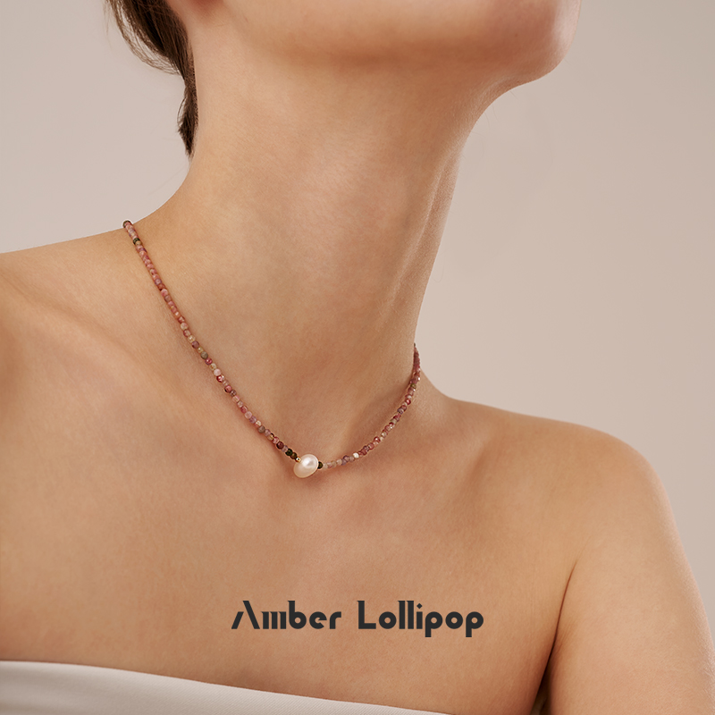 AmberLollipop彩色碧玺串珠项链女多巴胺轻奢珍珠锁骨链水晶颈链