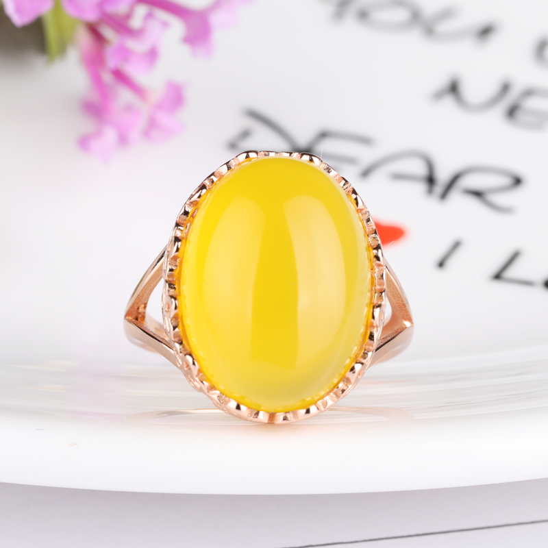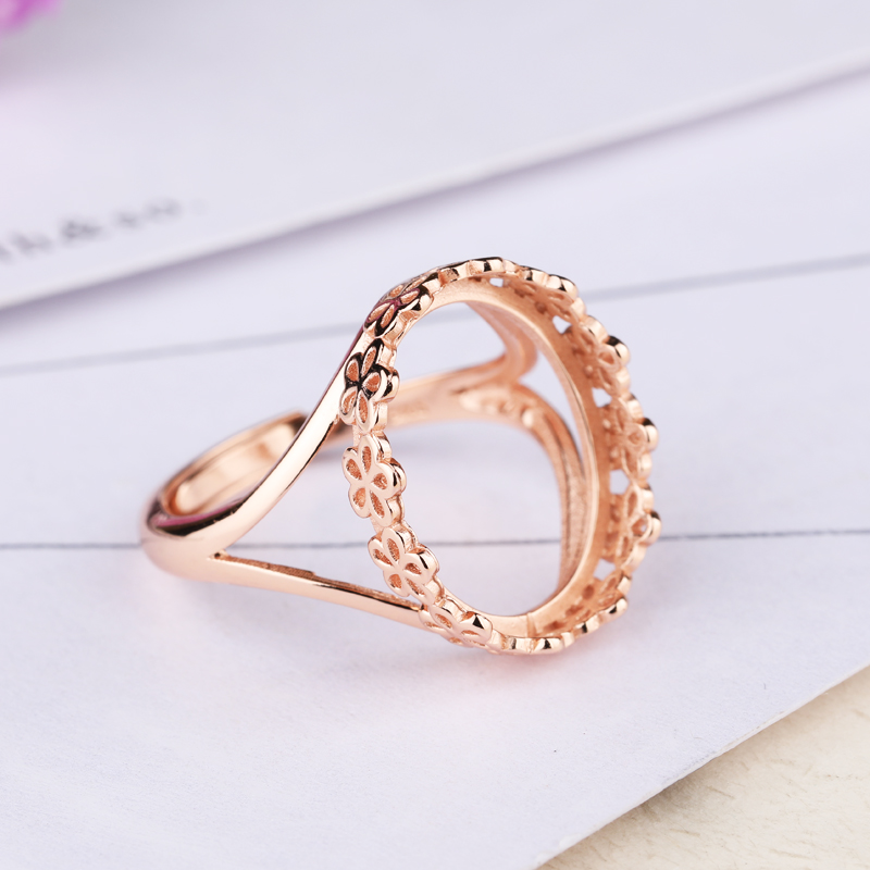 s925纯银镀玫瑰金色女款戒指空托镶嵌蜜蜡活口戒托银饰戒托14*17