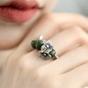 天然碧玉花朵戒指925银新款小众设计复古新中式弹力绳圆珠食指戒