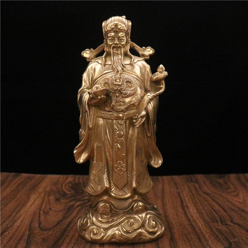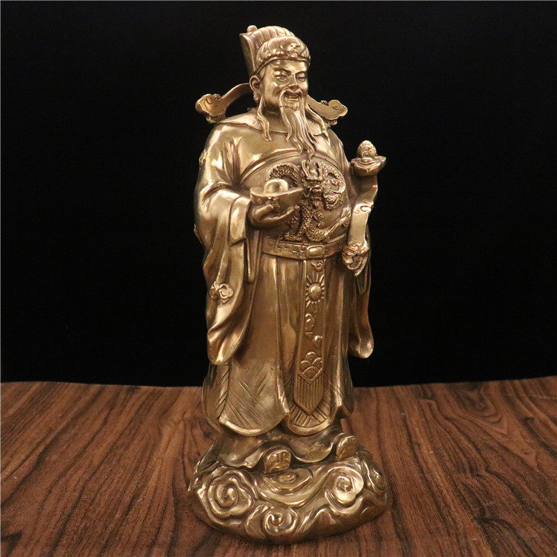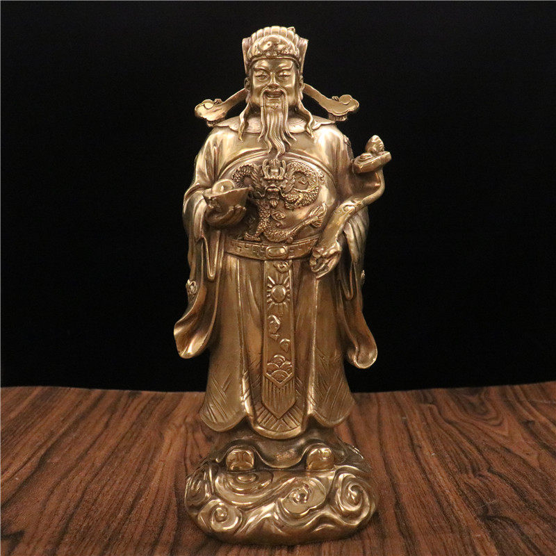 财神爷摆件纯铜文财神家用供养元宝如意财神桌面装饰站财神