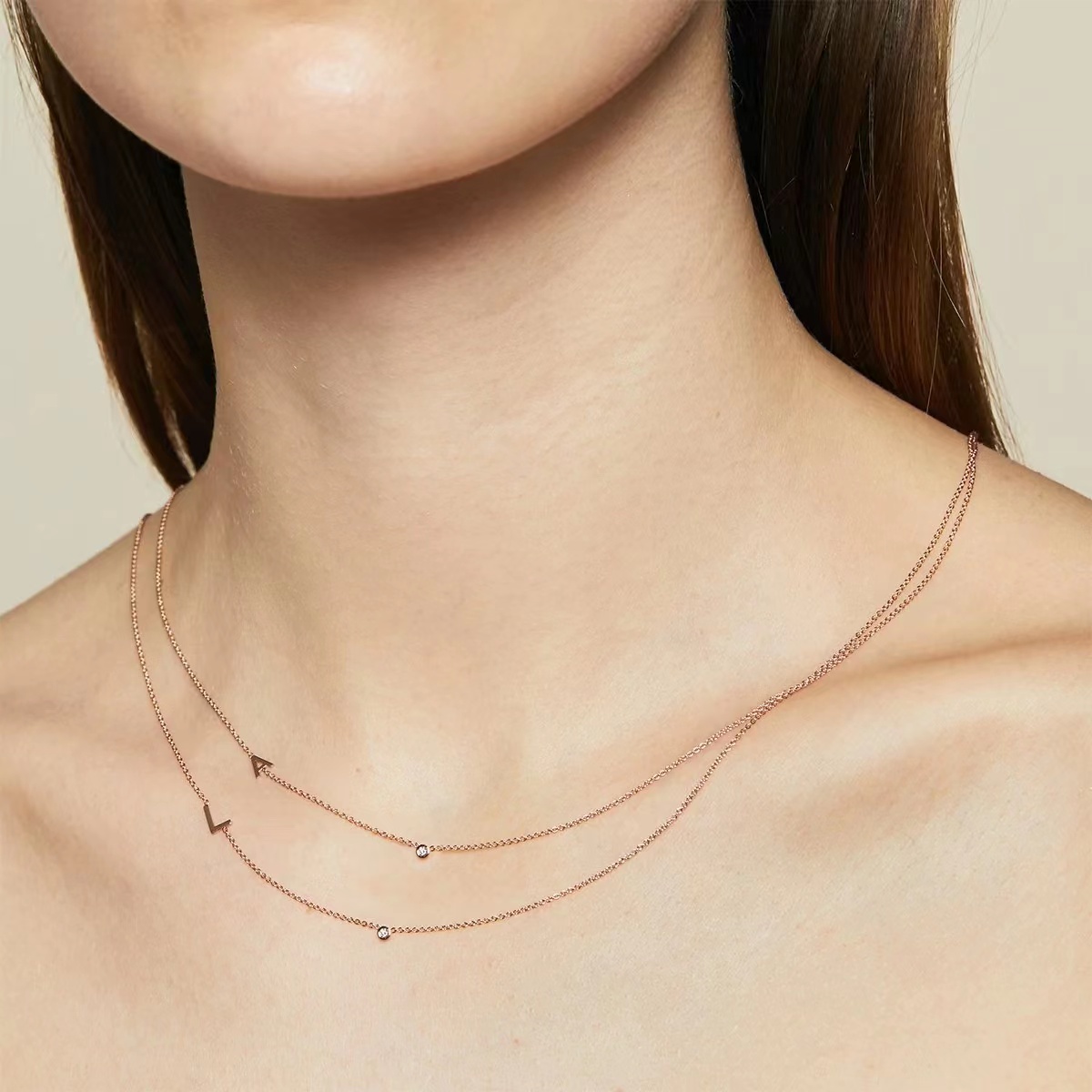 MINI BLOOM 纯银字母锆石项链可选字母锁骨链叠戴小众项链